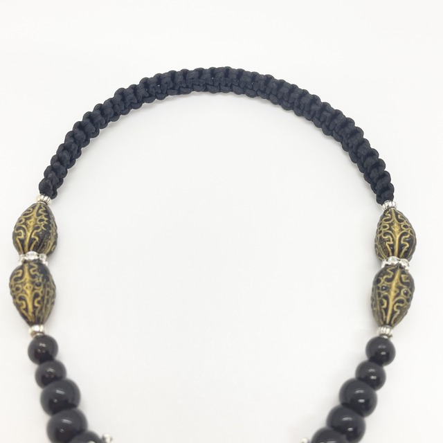 ビーズとサテンコードで編み上げたコラボレーション。 手元はコブラ編み、下の部分はねじり結びで とても丈夫です。 ツヤツヤしてキラッとしたサテンコードは、自慢の我が子を引き立ててくれる事間違いなし!! アンティーク風ビーズとシャイニングビーズがゴージャスで高級感のあるビーズリードです。 サイズ:72cm 推奨体重:30kgまで 《注意事項》※必ずお読みください。 ・引っ張り癖・噛み癖のある子はオススメ出来ません。 ・ビーズ・金具は製造工程の上で、キズ・色むら・バリなどが発生する場合があります。 その旨、ご了承の上ご購入ください。 ・写真と実際の商品とイメージが若干異なる場合がございます。ご了承ください。 ・こちらはハンドメイド商品です。 完璧を求められる方はご遠慮ください。 ・安全にご使用いただく為に、定期的に点検して下さい。商品の劣化・ビーズの破損などにお気付きの場合、使用を中止し新しい物をご購入下さい。修理又は修正はしておりません。 ・小さなパーツを使用しておりますので、くれぐれもペットの誤飲にはご注意下さい。 ・本品ご使用中、いかなる事故等について一切の責任は負いかねますので、着用時はくれぐれもご注意下さい。 ・こちらの不備以外での返品はお受け出来ません。 ・保管の際は布で拭き取り直射日光を避けて下さい