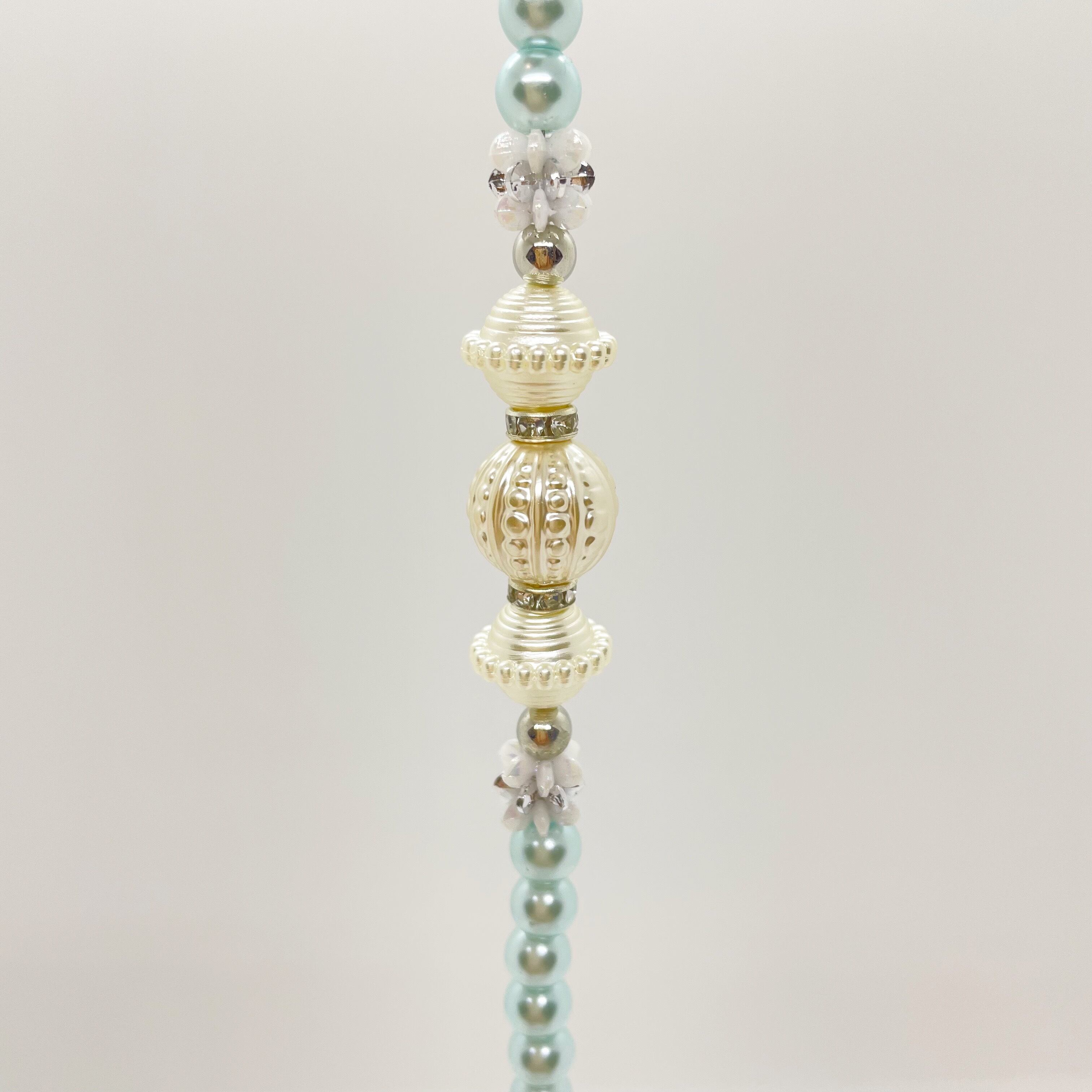 ・安全にご使用いただく為に、定期的に点検して下さい。商品の劣化・ビーズの破損などにお気付きの場合、使用を中止し新しい物をご購入下さい。修理又は修正はしておりません。