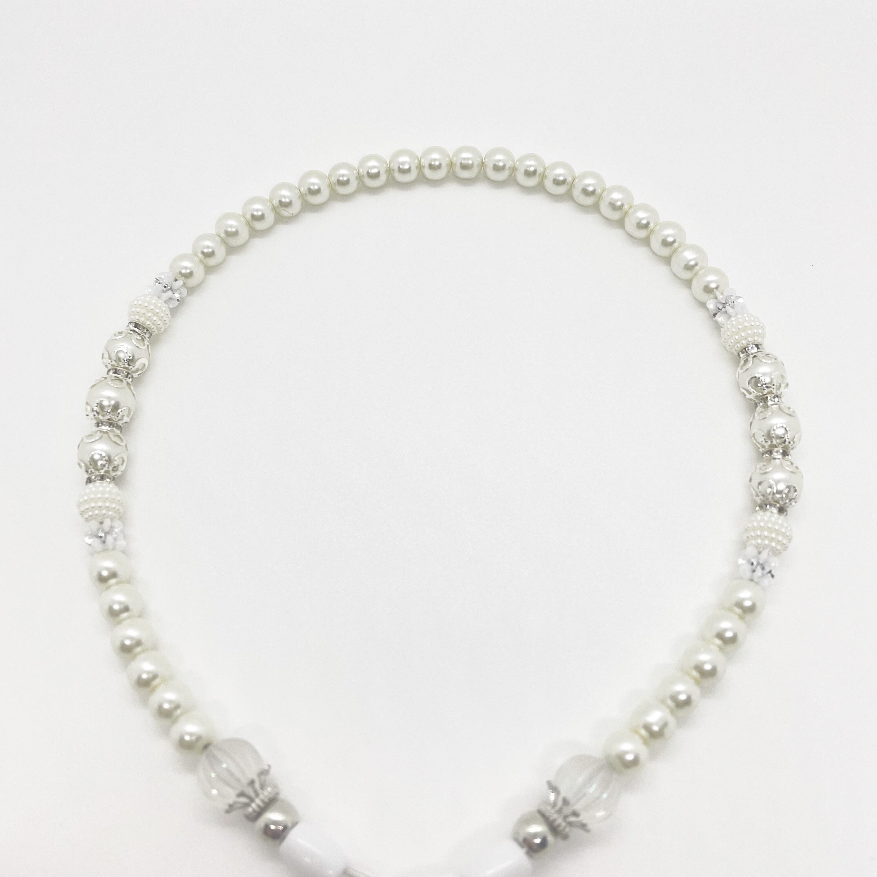 シンプルに統一されたパール風ビーズに、ツイストビーズを組み合わせたエレガントなリードです。