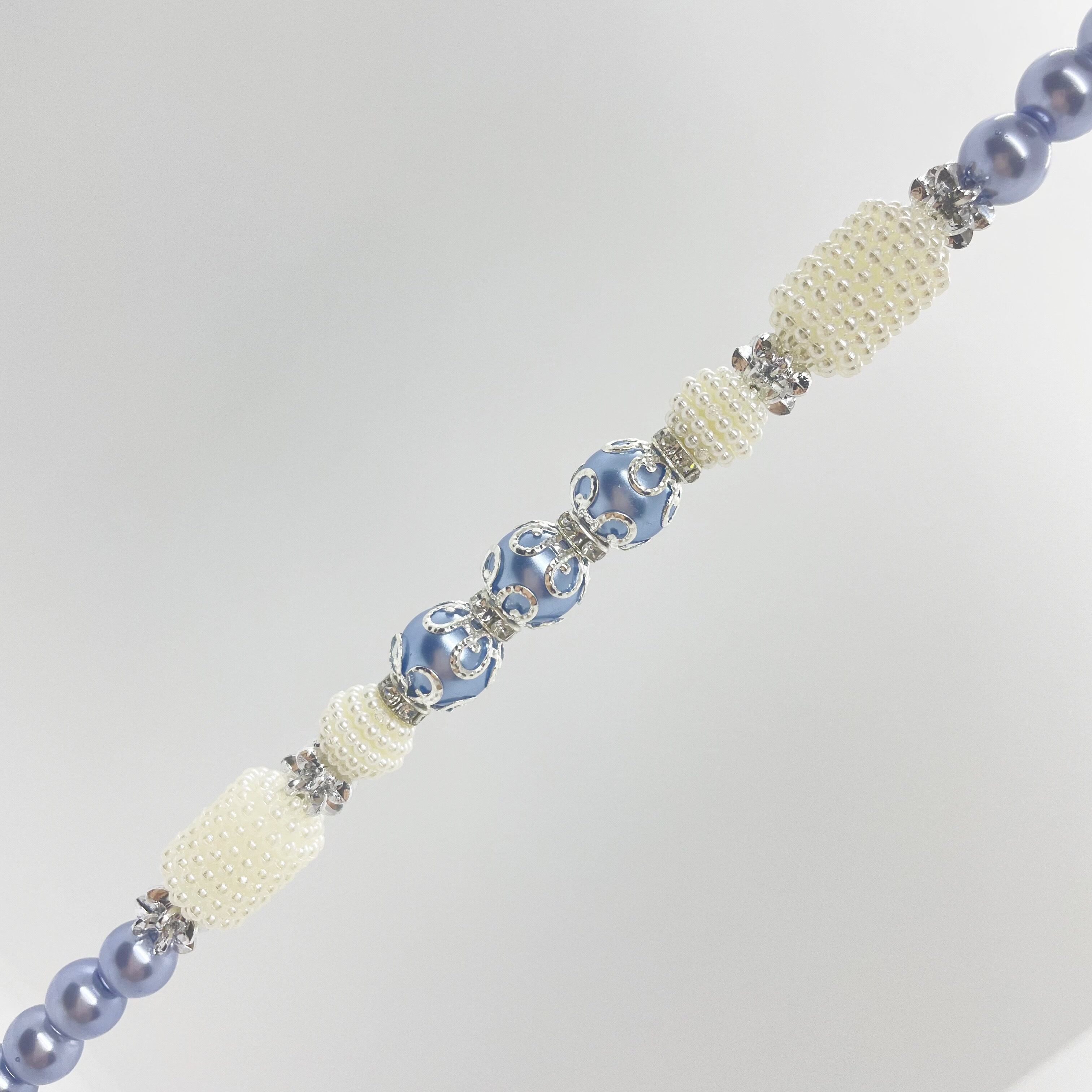 シンプルに統一されたパール風ビーズに、ツイストビーズを組み合わせたエレガントなリードです。