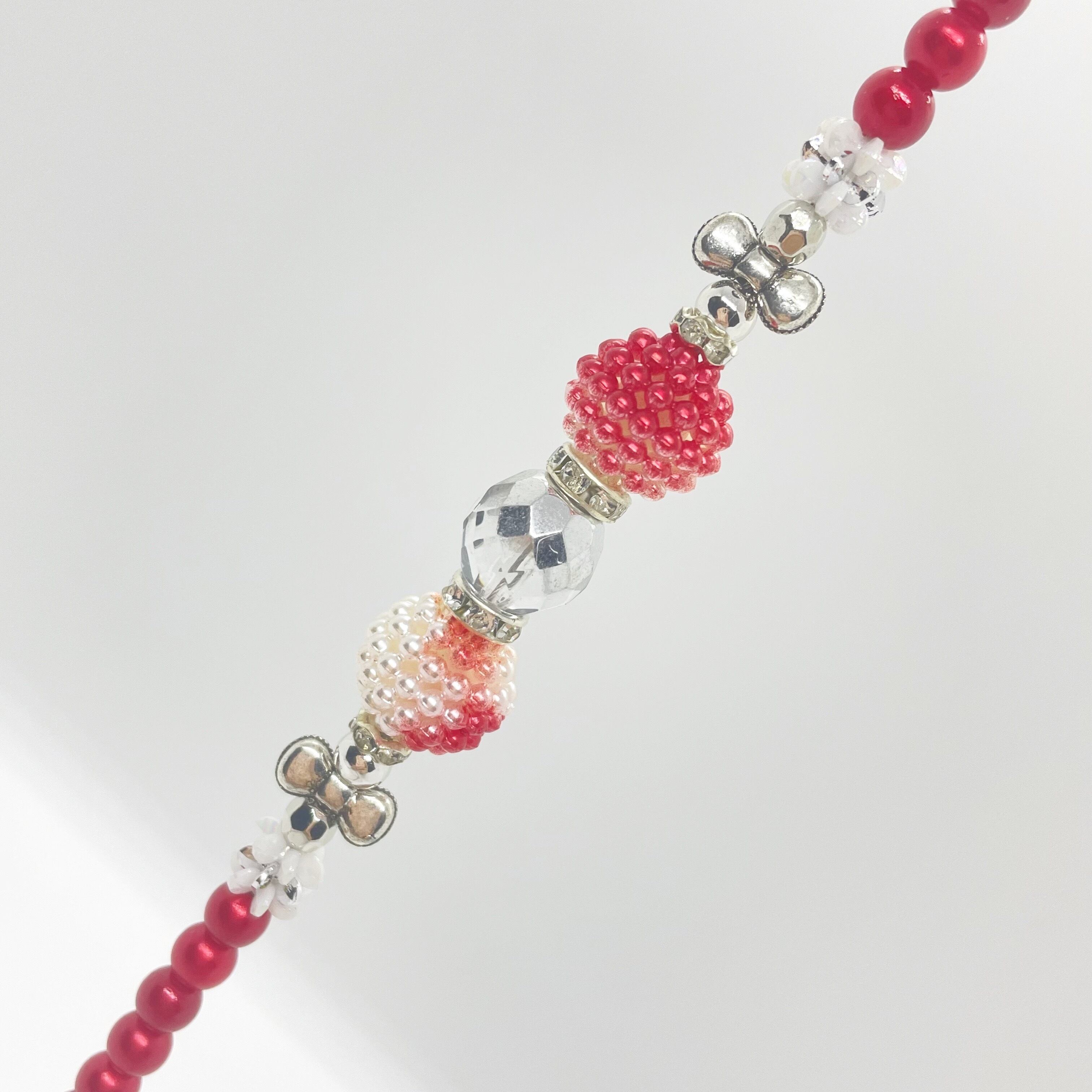 インパクトのあるぷっくり可愛らしいベイベリービーズがアクセントになったリードビーズです。