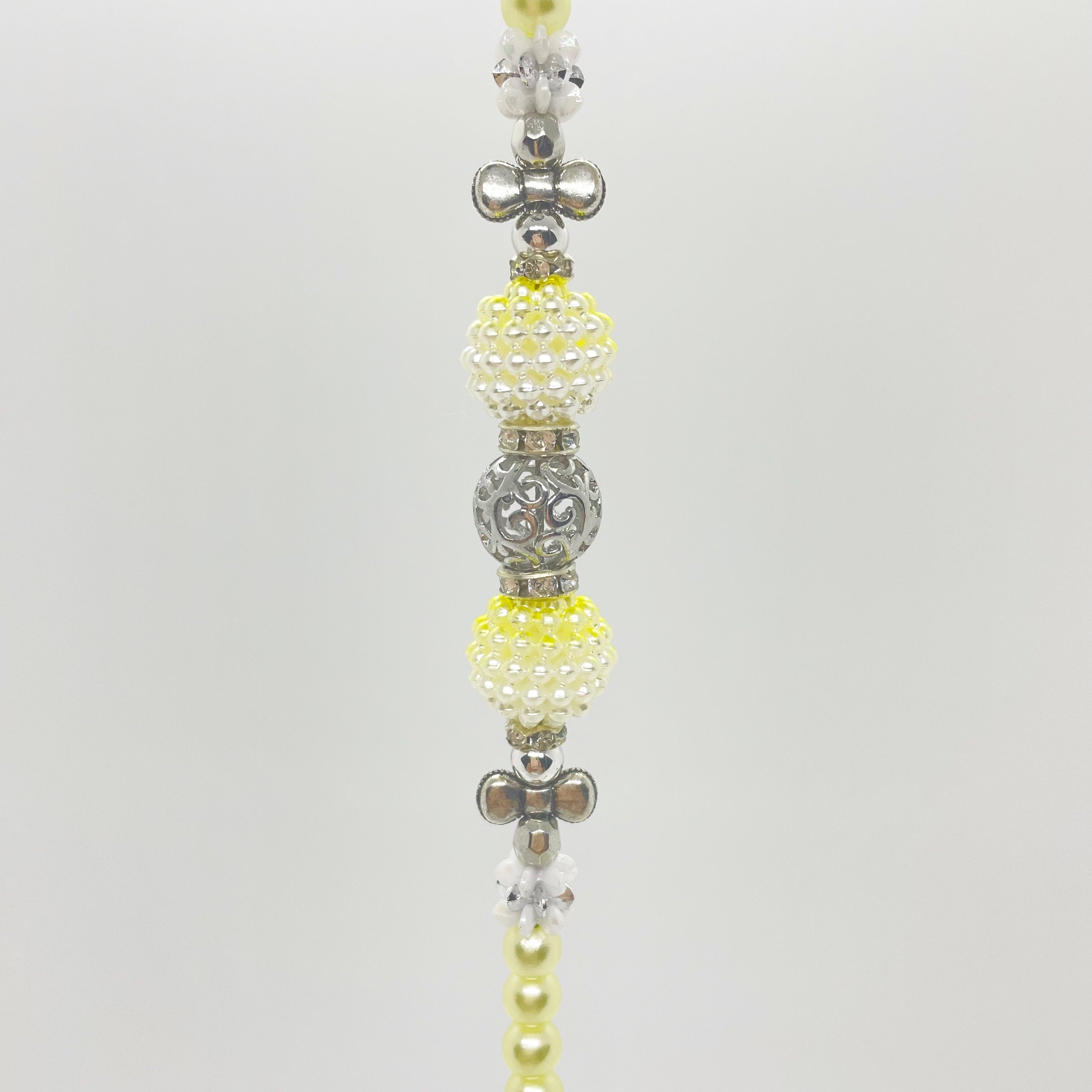 ・安全にご使用いただく為に、定期的に点検して下さい。商品の劣化・ビーズの破損などにお気付きの場合、使用を中止し新しい物をご購入下さい。修理又は修正はしておりません。