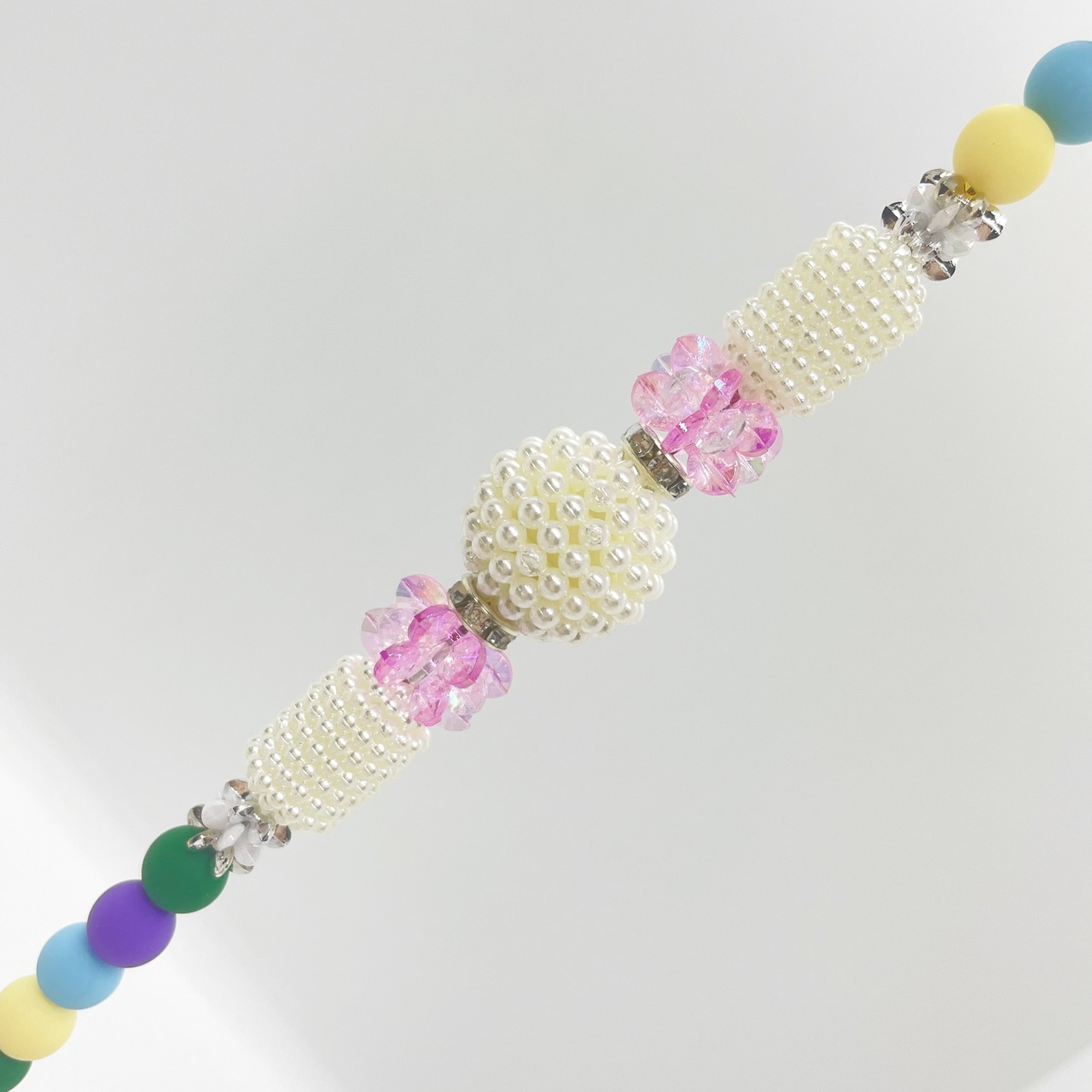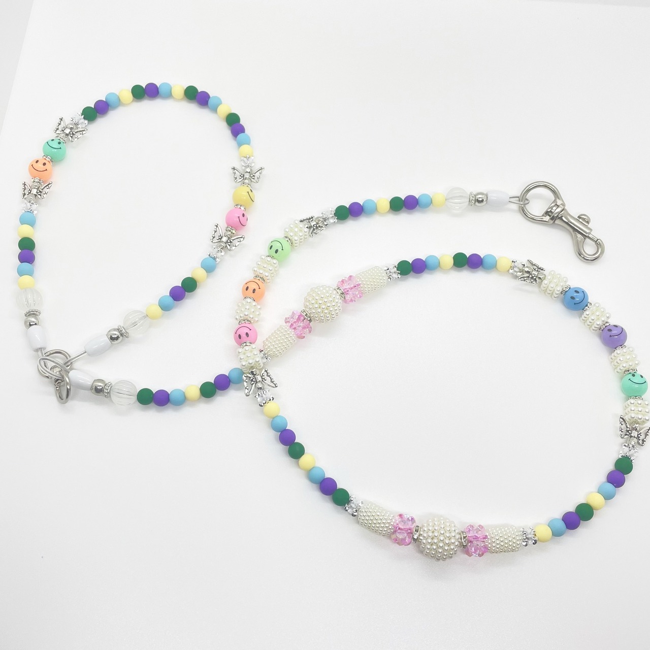 ポップなシリコンビーズに、ニコちゃんがアクセントになって可愛らしいビーズリードです。