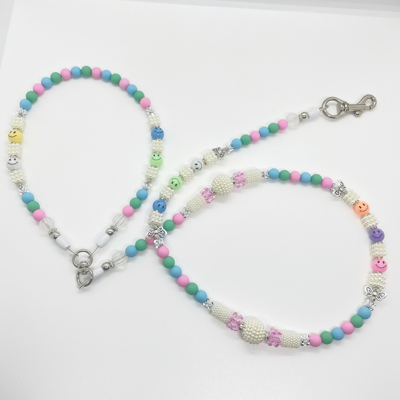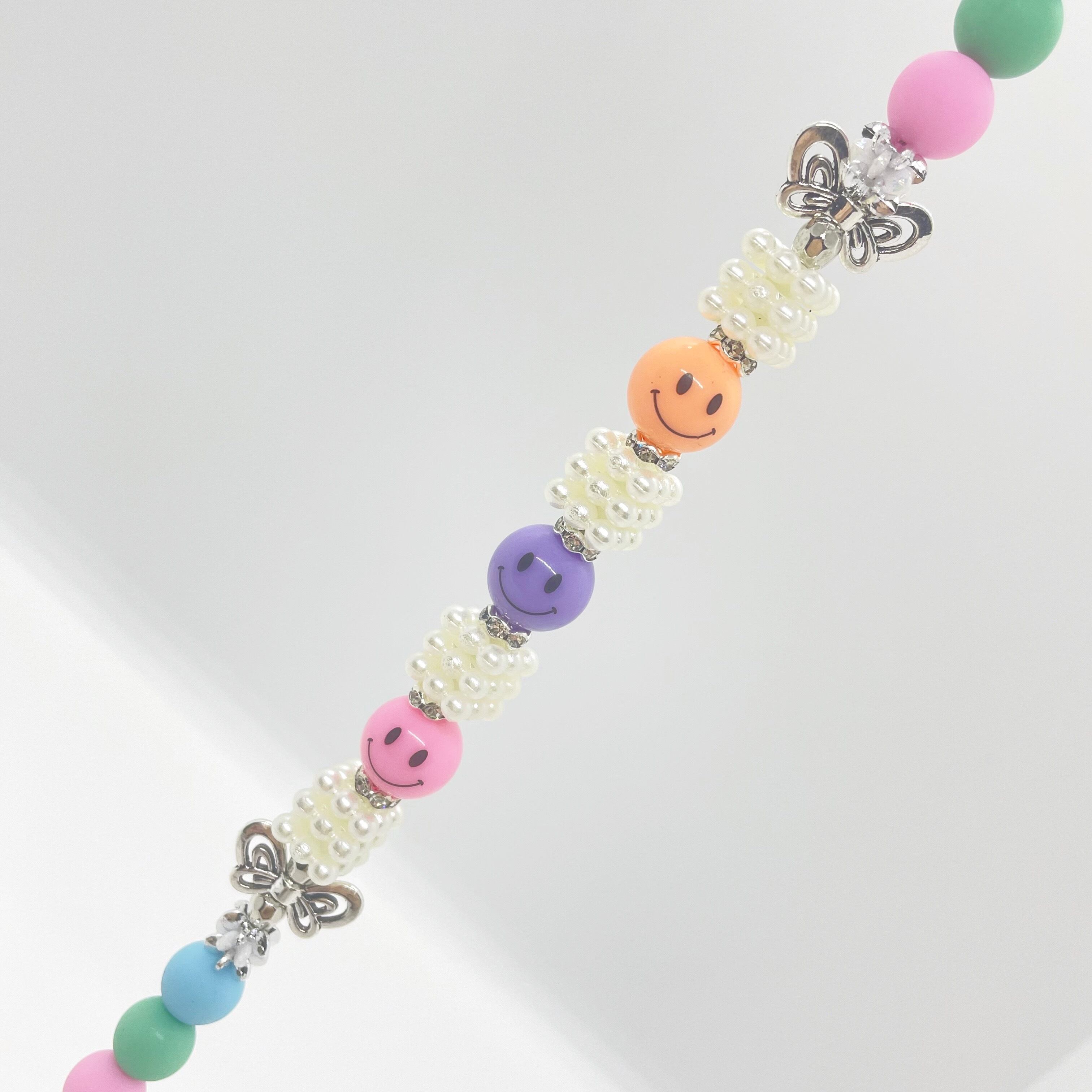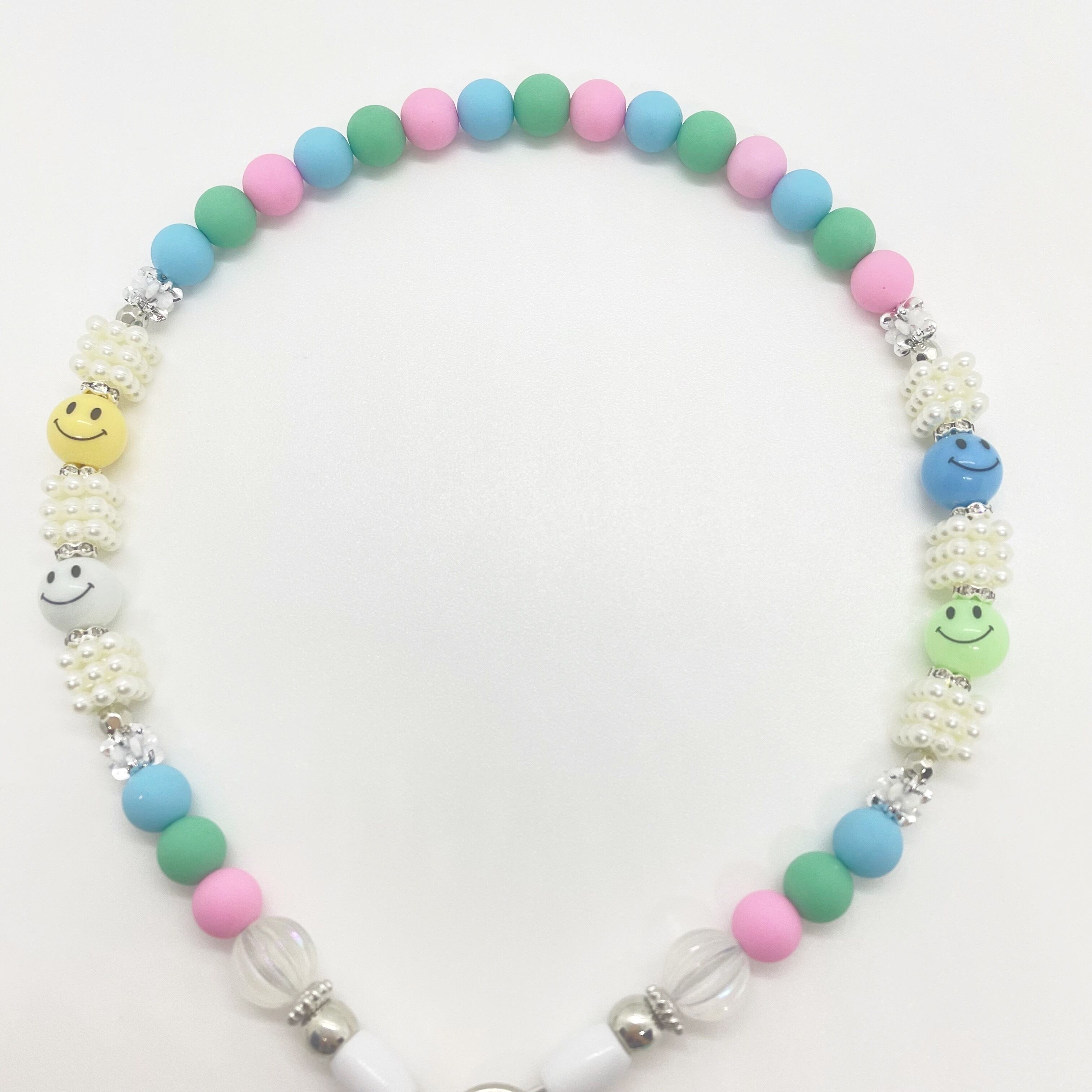 ポップなシリコンビーズに、ニコちゃんがアクセントになって可愛らしいビーズリードです。