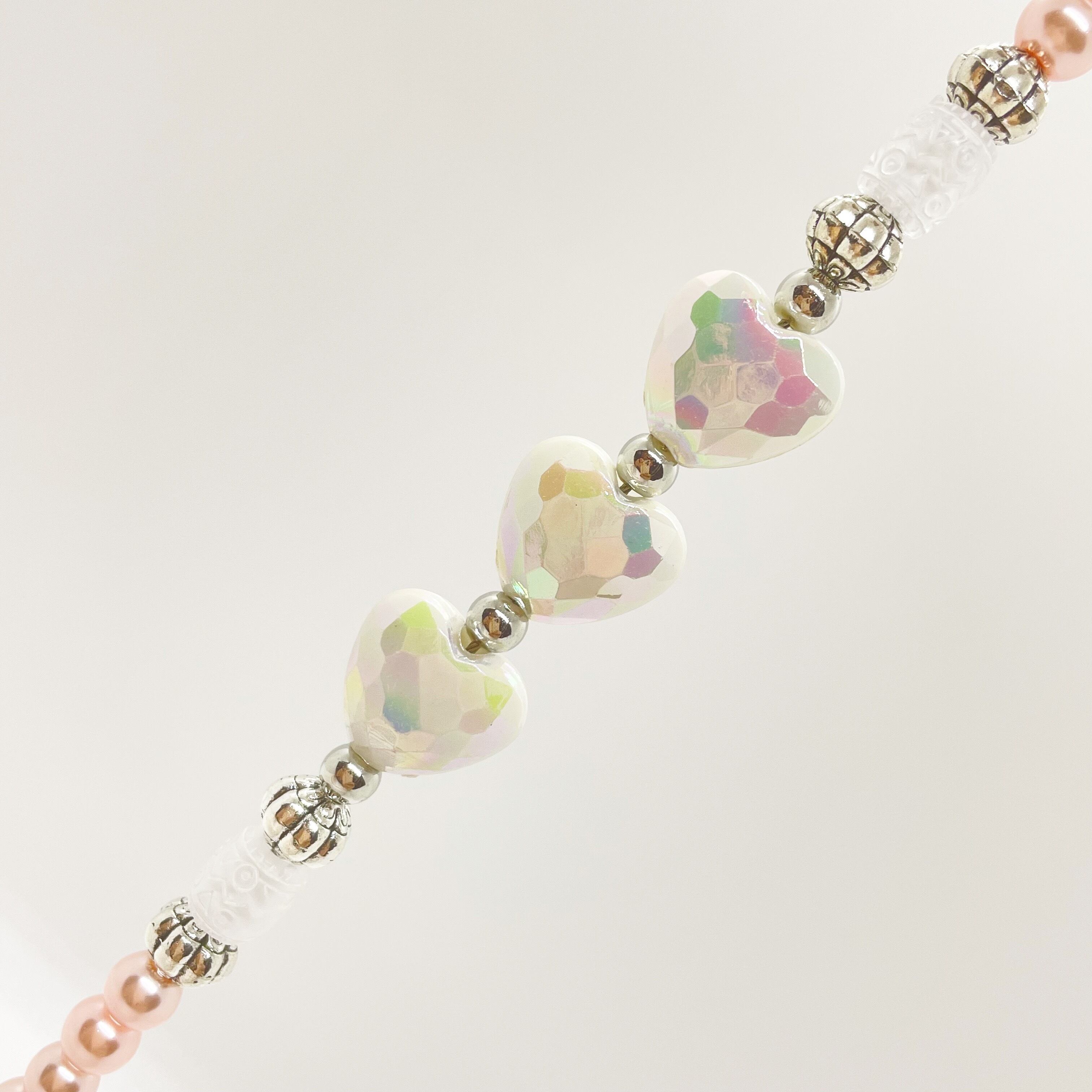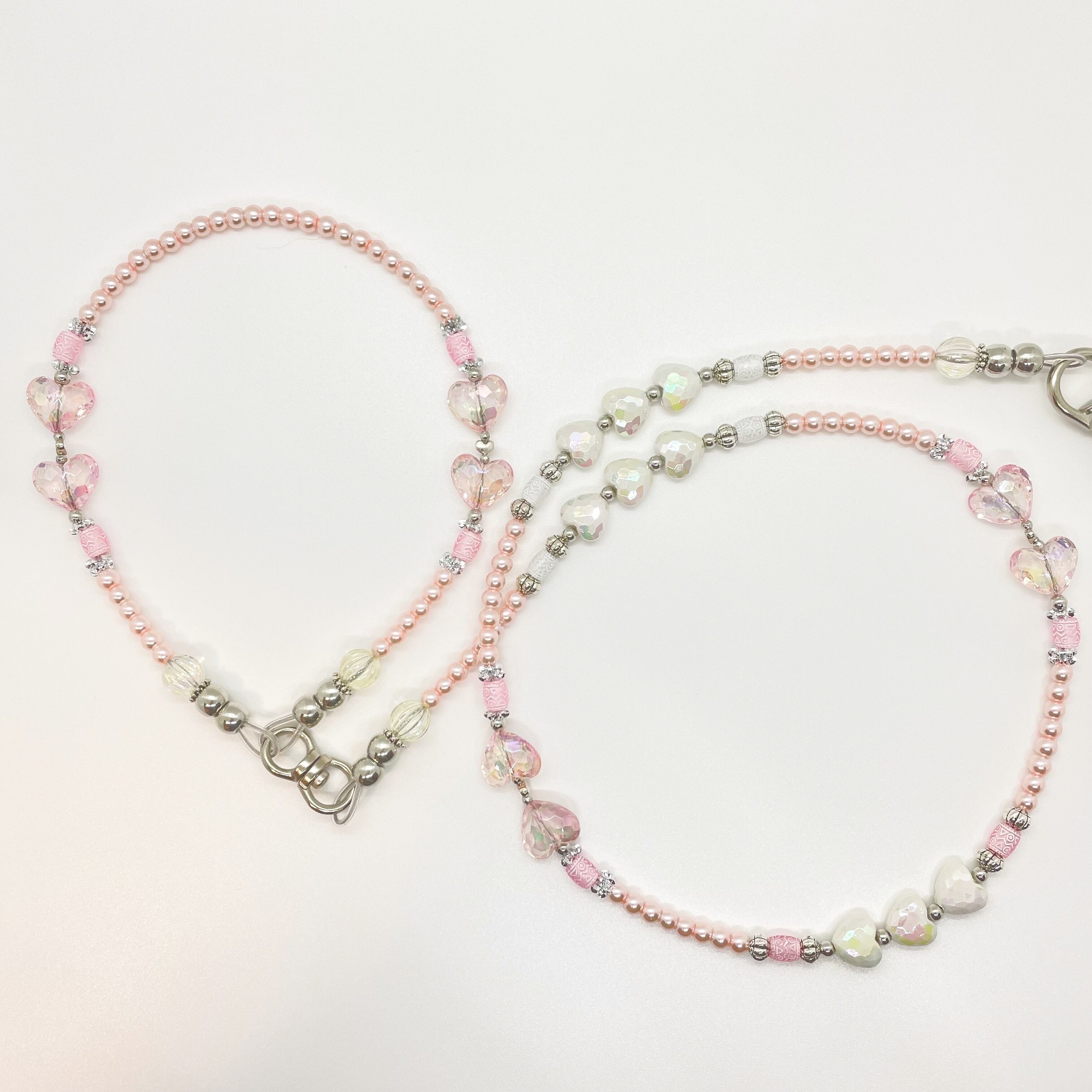 ダイヤカットされたハートのビーズがキラキラ可愛らしいビーズリードです。