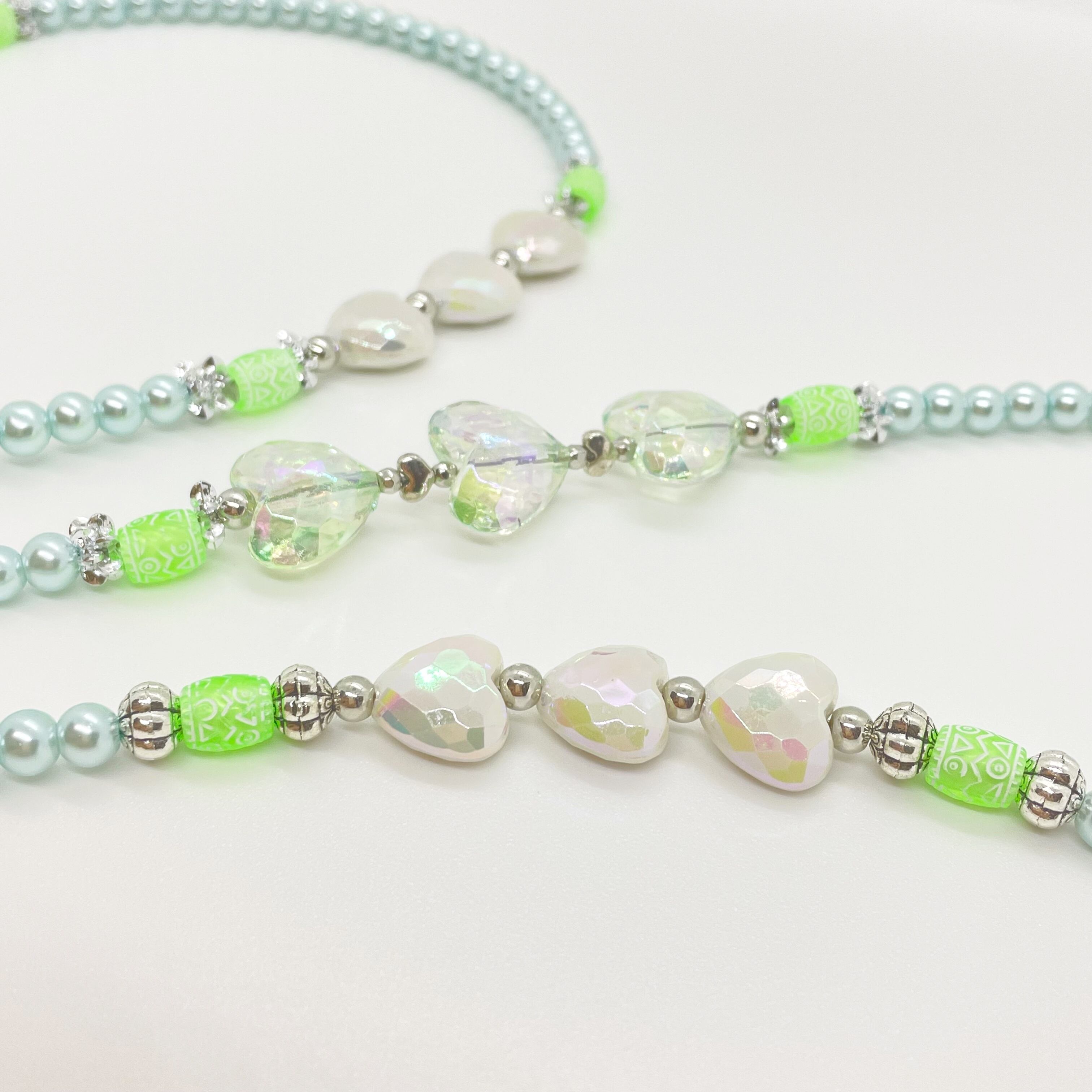 ダイヤカットされたハートのビーズがキラキラ可愛らしいビーズリードです。