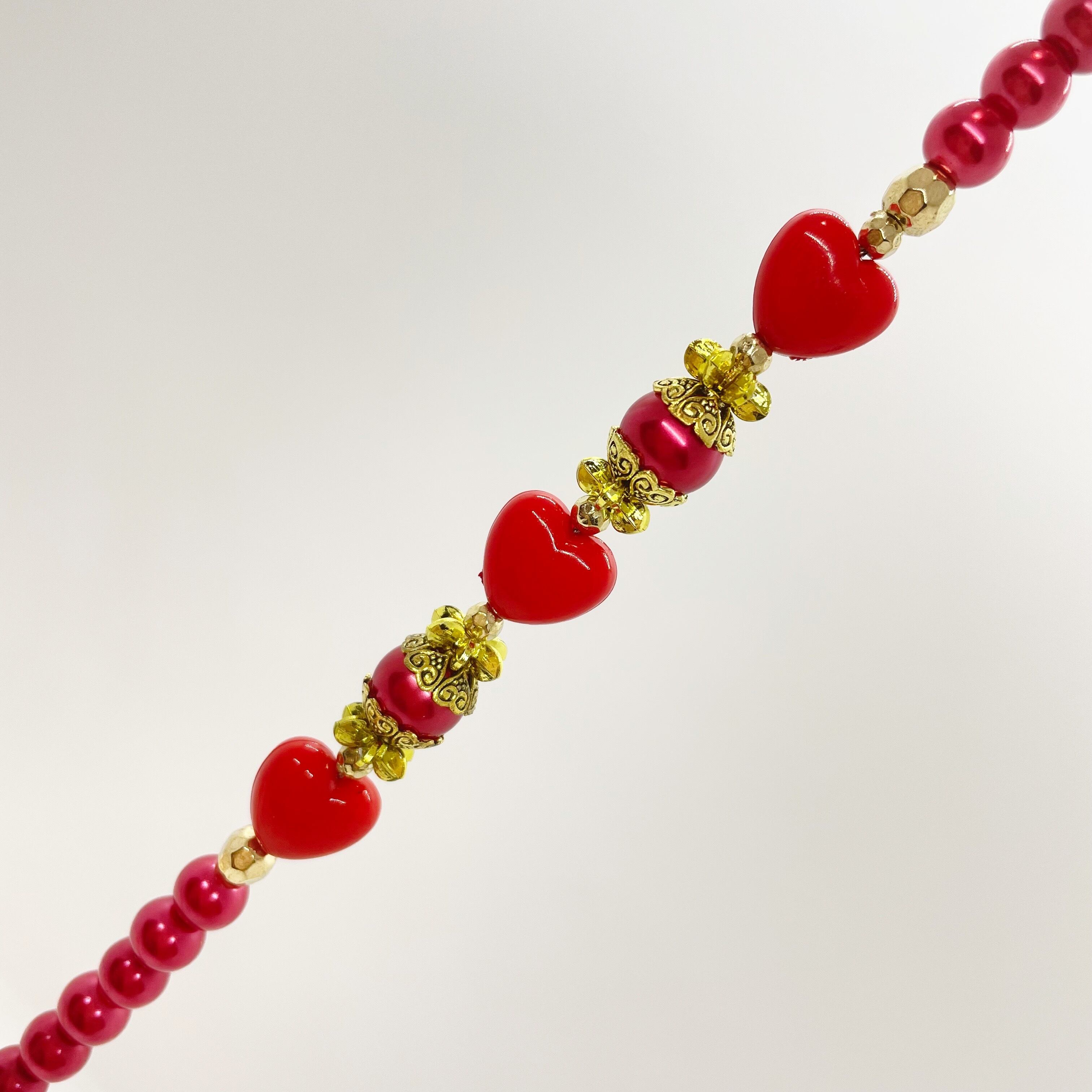 ハートのビーズが可愛らしく、大きめのメタルビーズがゴージャス感を出したビーズリードです。