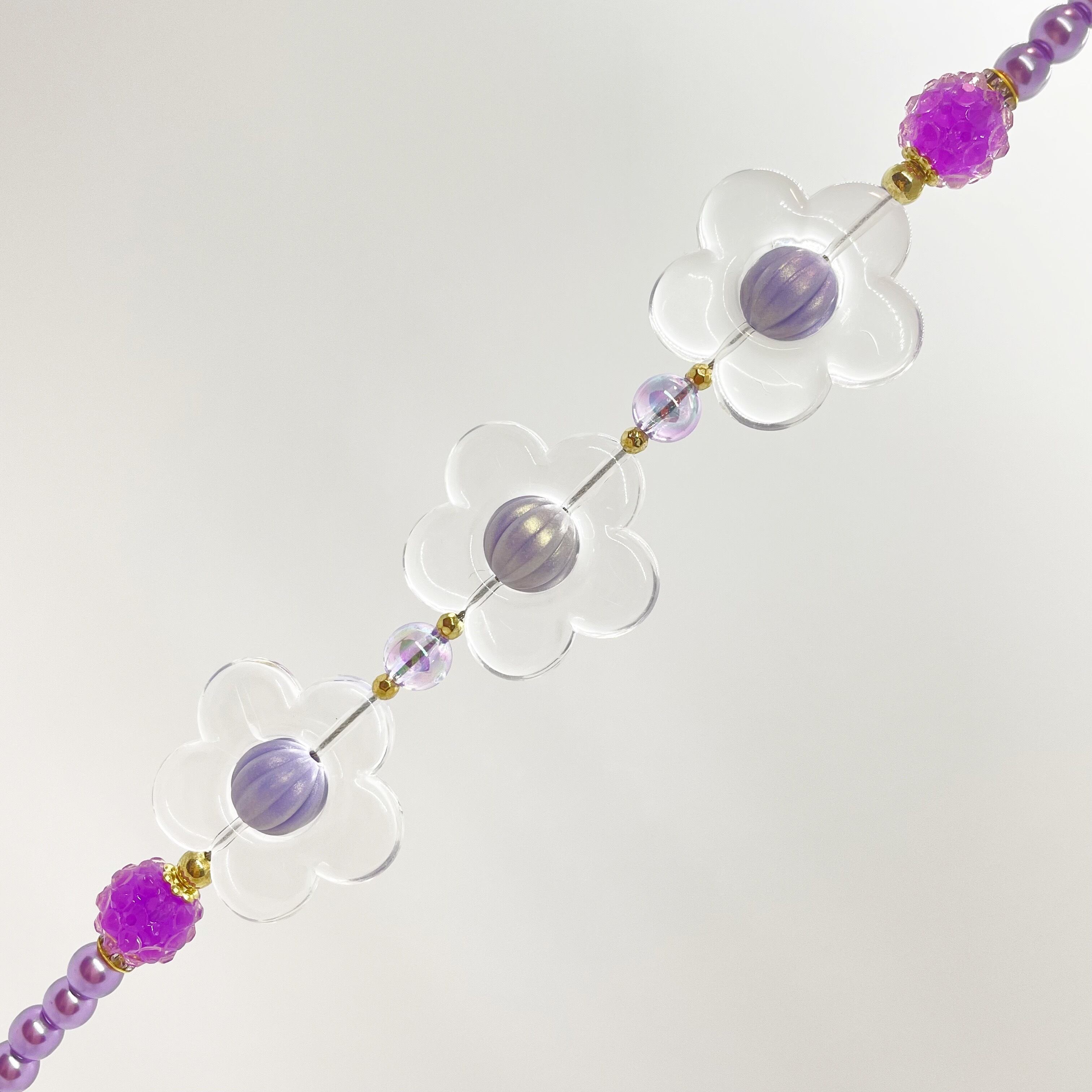 インパクトのあるお花のスペーサービーズに、オーロラビーズの蝶々がキラキラ可愛らしいビーズリードです。〔全2カラーバリエーションあります〕