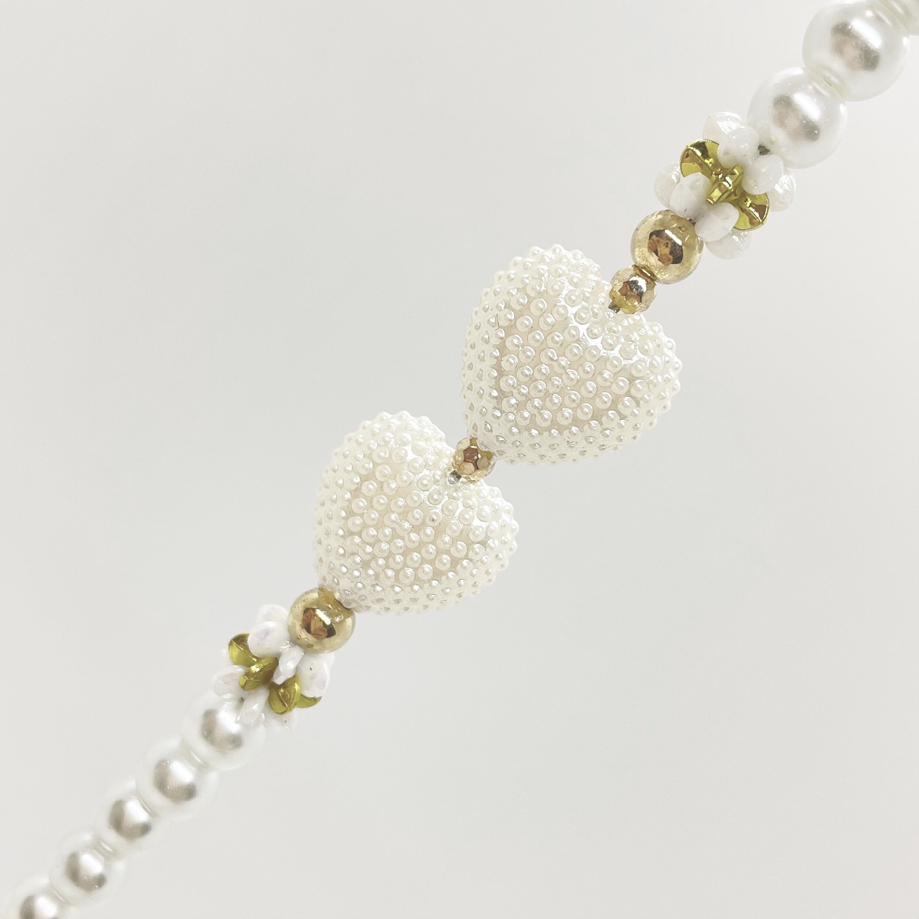 大きめのベイベリービーズと、ハートのポコポコした可愛らしいビーズがオシャレなビーズリードです。