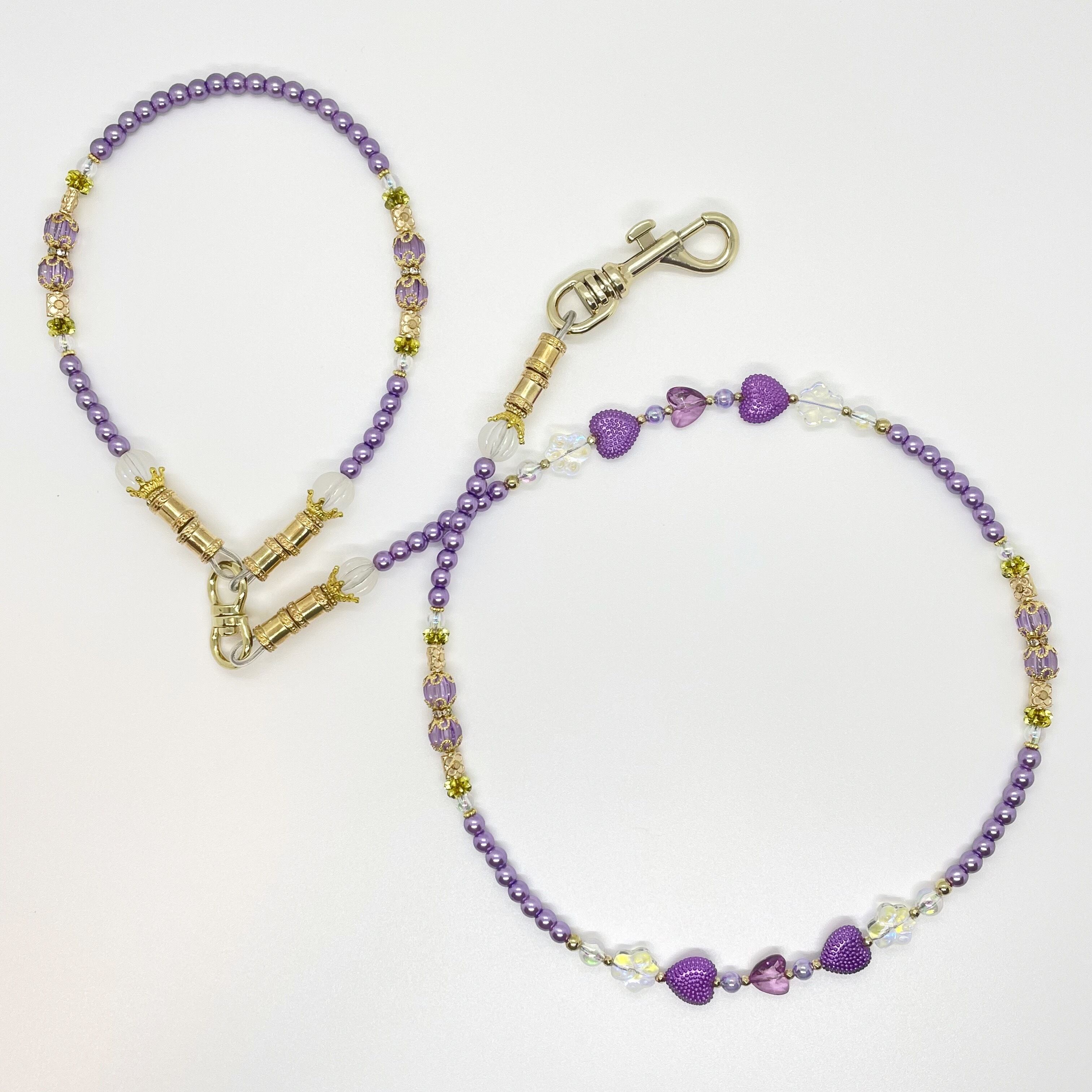 ビーズキャップで包んだクリアービーズがゴージャスでハートが可愛らしさを出してくれるビーズリードです。