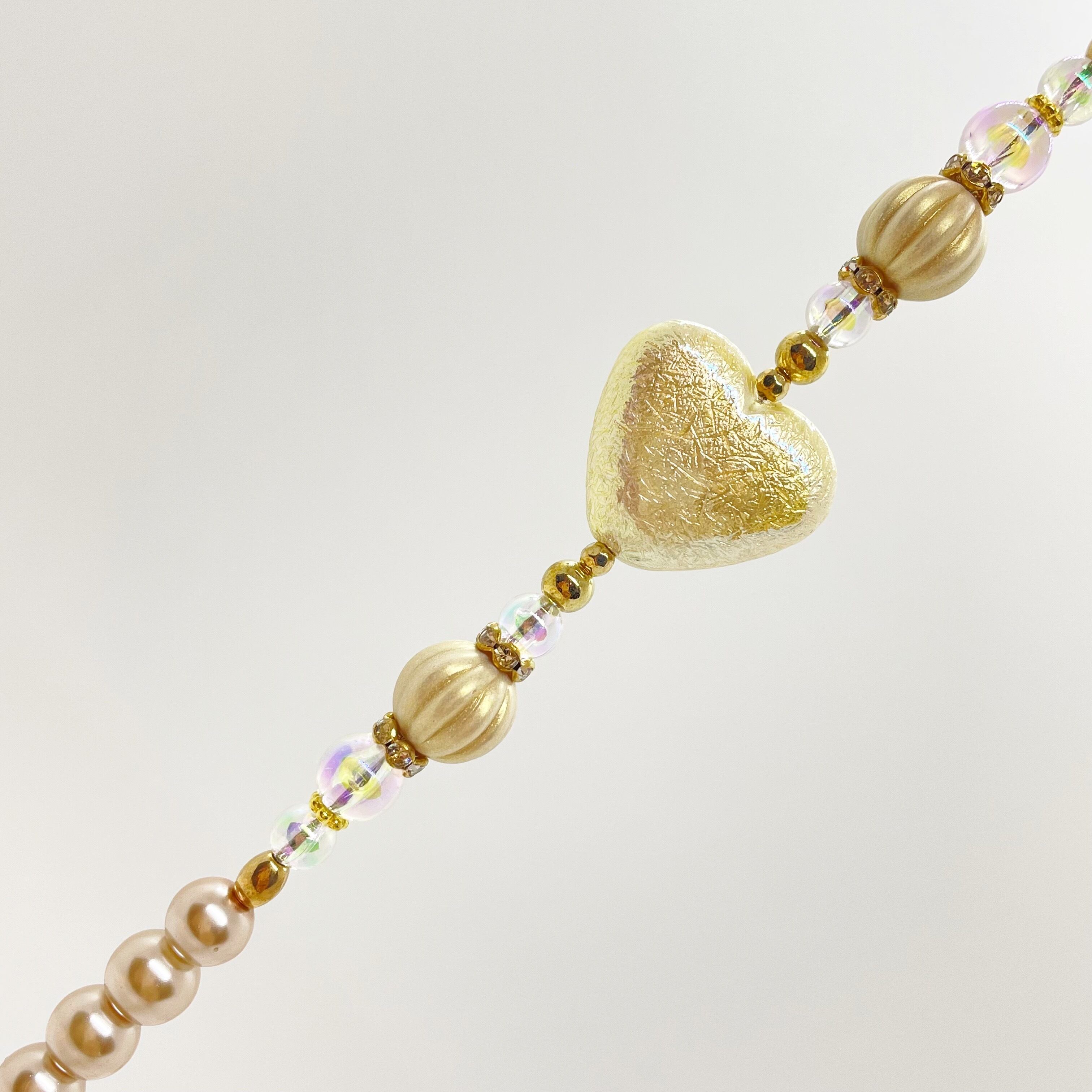 アンティーク風ビーズにインパクトのあるハートはクラック柄で全体がベージュ系で統一されたエレガントなビーズリードです。
