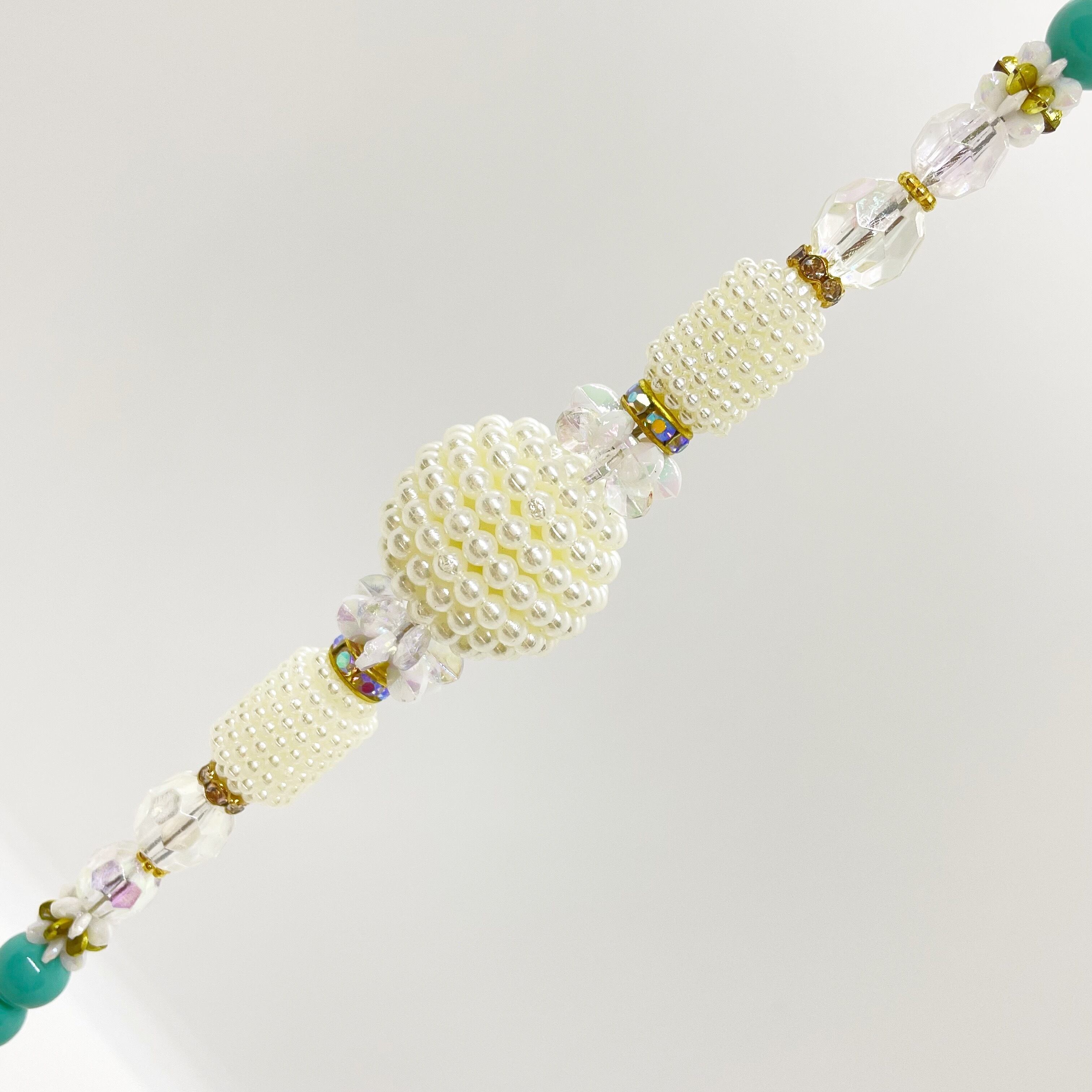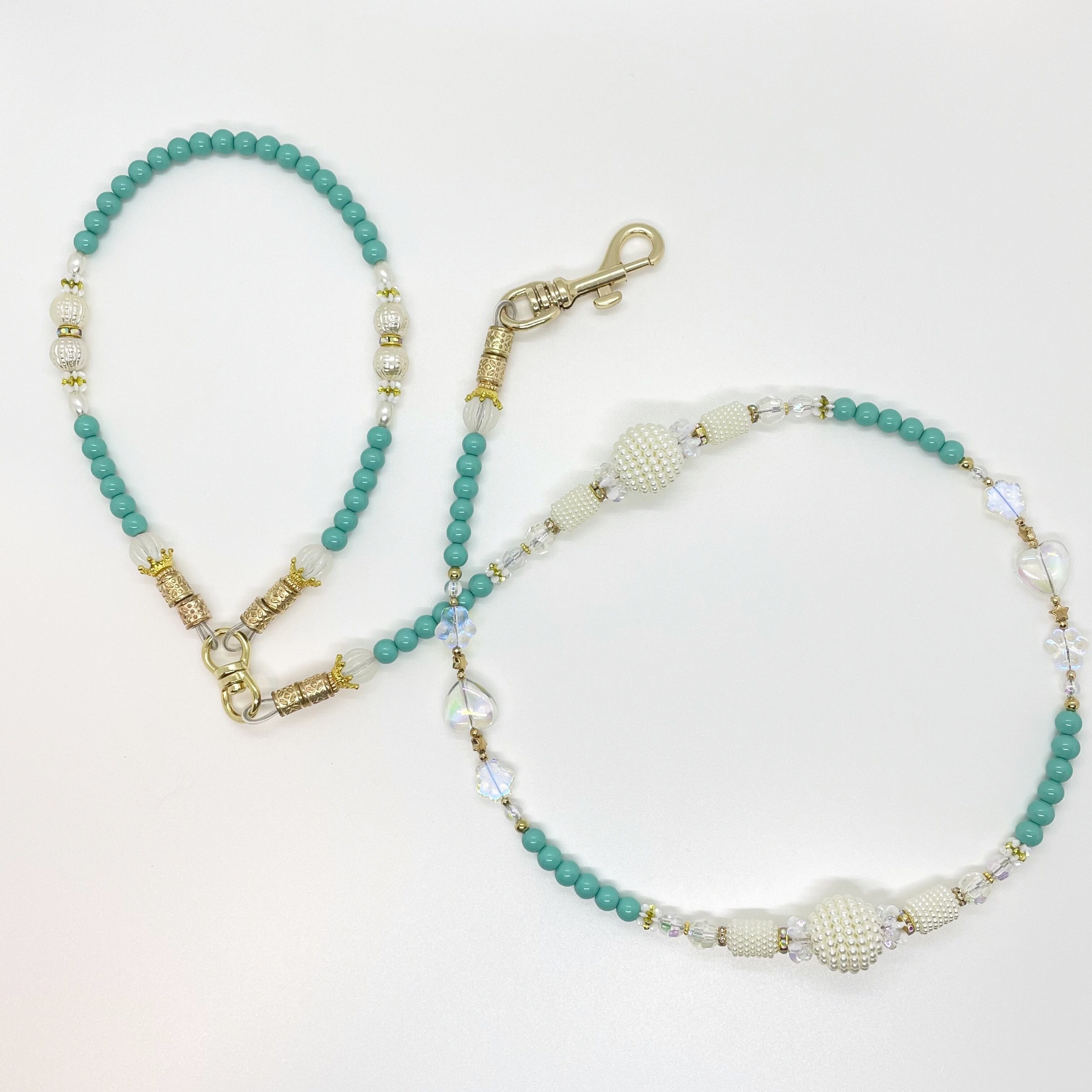 クールなターコイズカラーに、まん丸ベイベリービーズと肉球が可愛らしいビーズリードです。