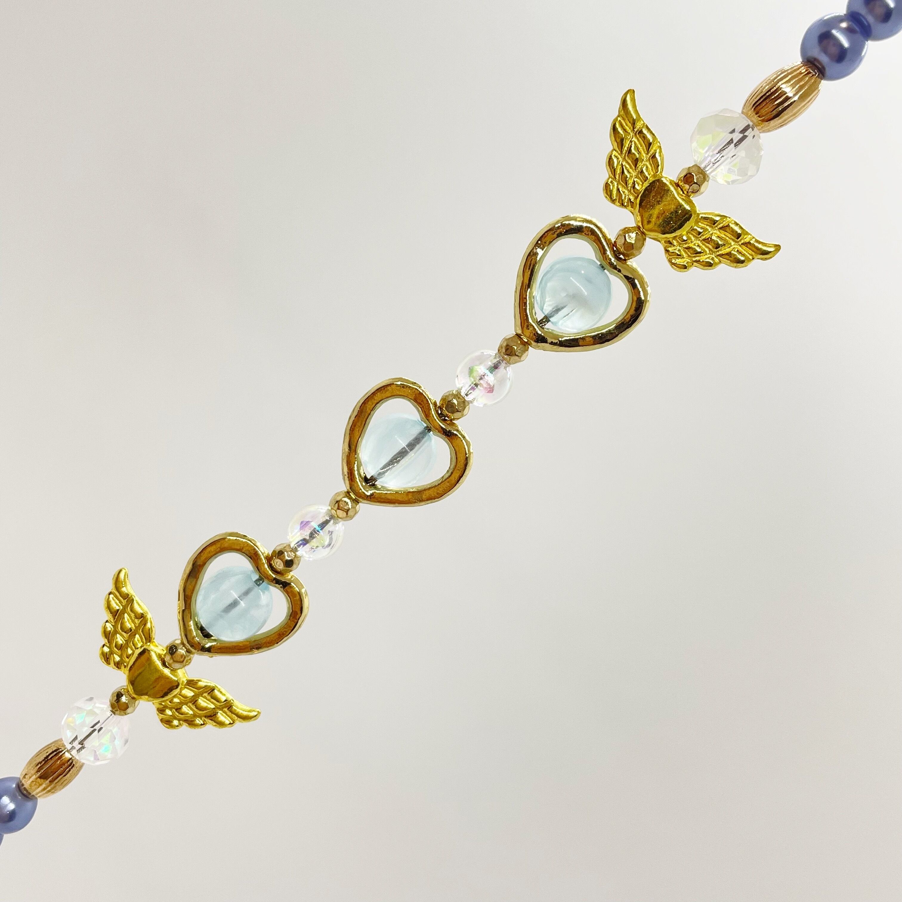 ハートのスペーサービーズに、天使のはねのメタルビーズが可愛らしいビーズリードです。