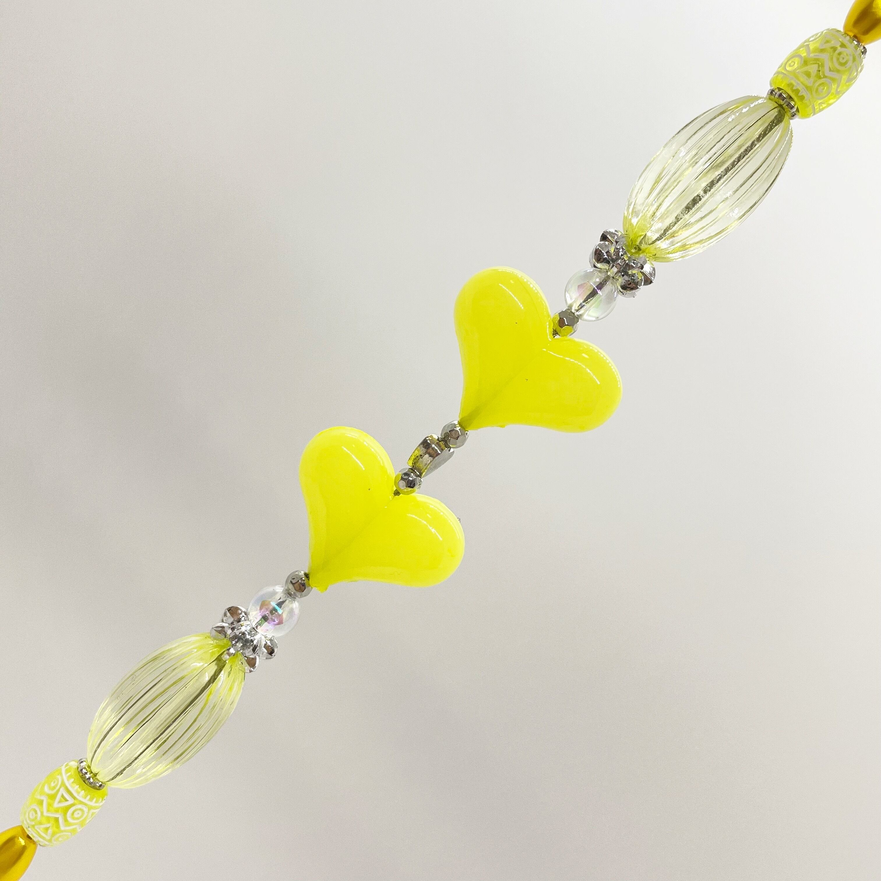 リボンのビーズにハートのビーズを組み合わせた可愛らしいビーズリードです。