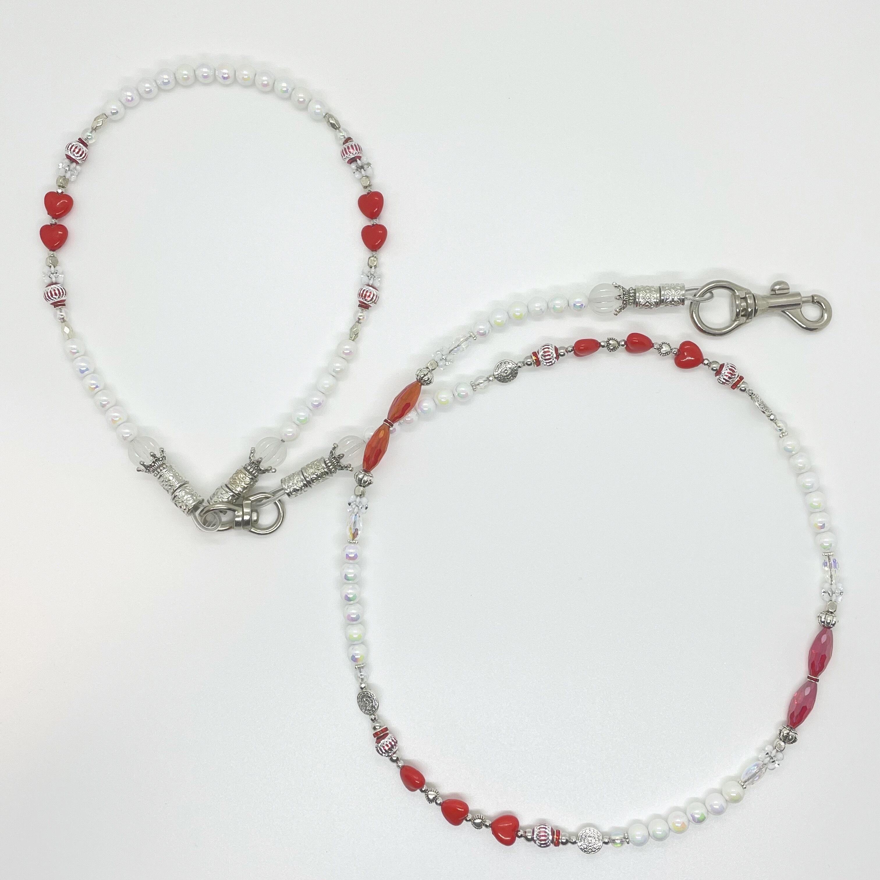 ハートビーズの可愛らしさとゴージャス感のあるメタルビーズの華やかなビーズリードです。