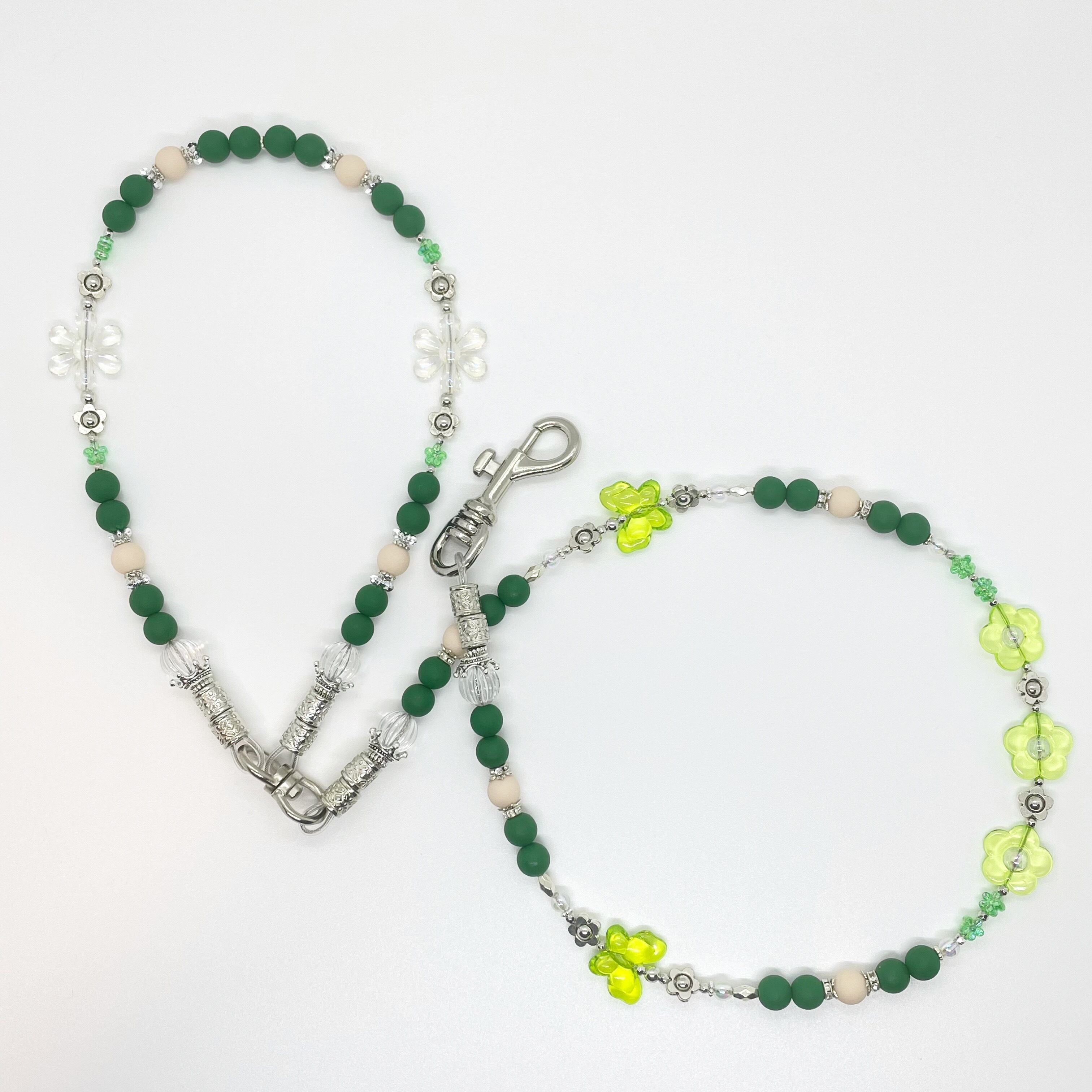 ポップなシリコンビーズに、お花と蝶々を組み合わせた華やかなビーズリードです。