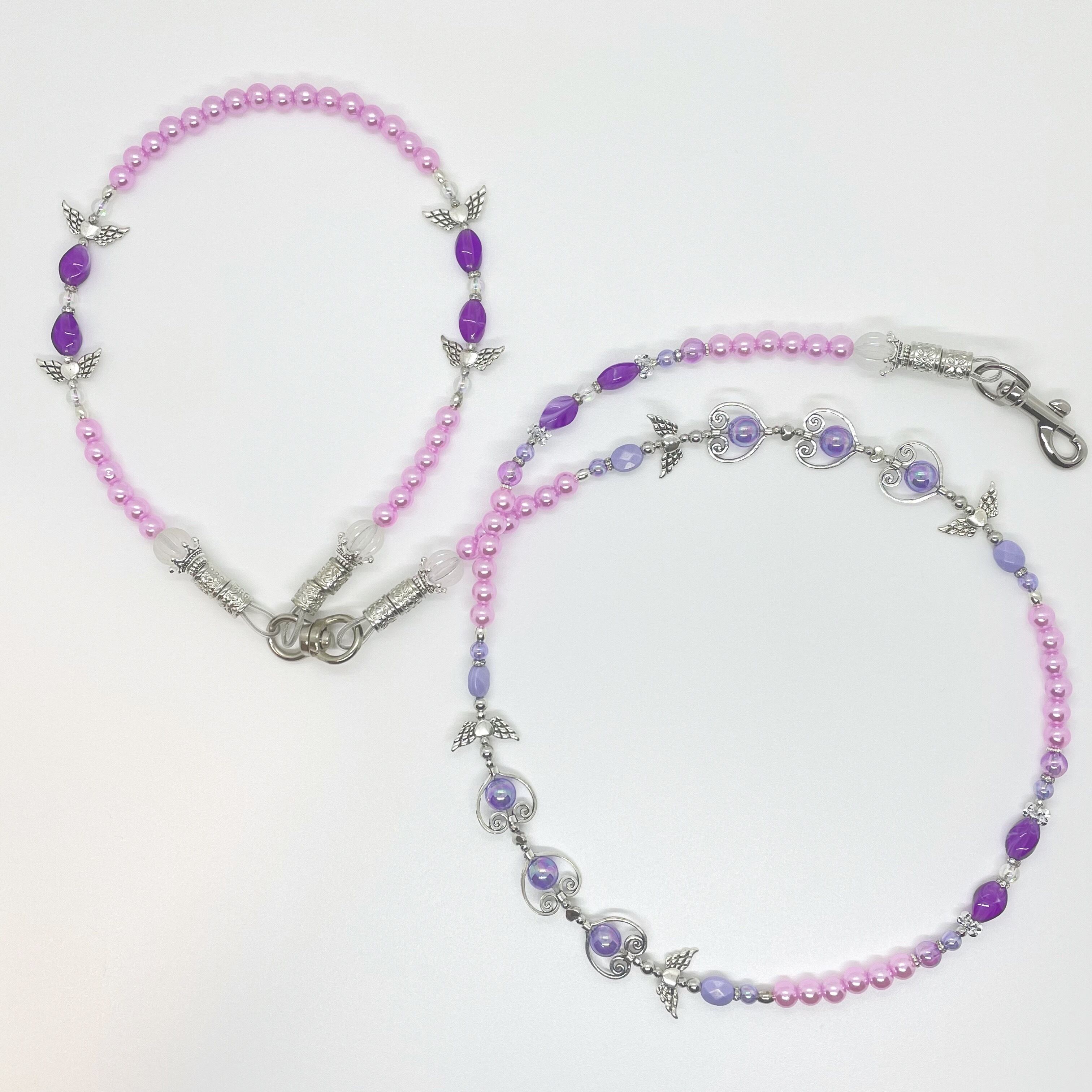 ハートのスペーサービーズにオーロラビーズが入って可愛らしく、天使のはねがインパクトあるゴージャスなビーズリードです。