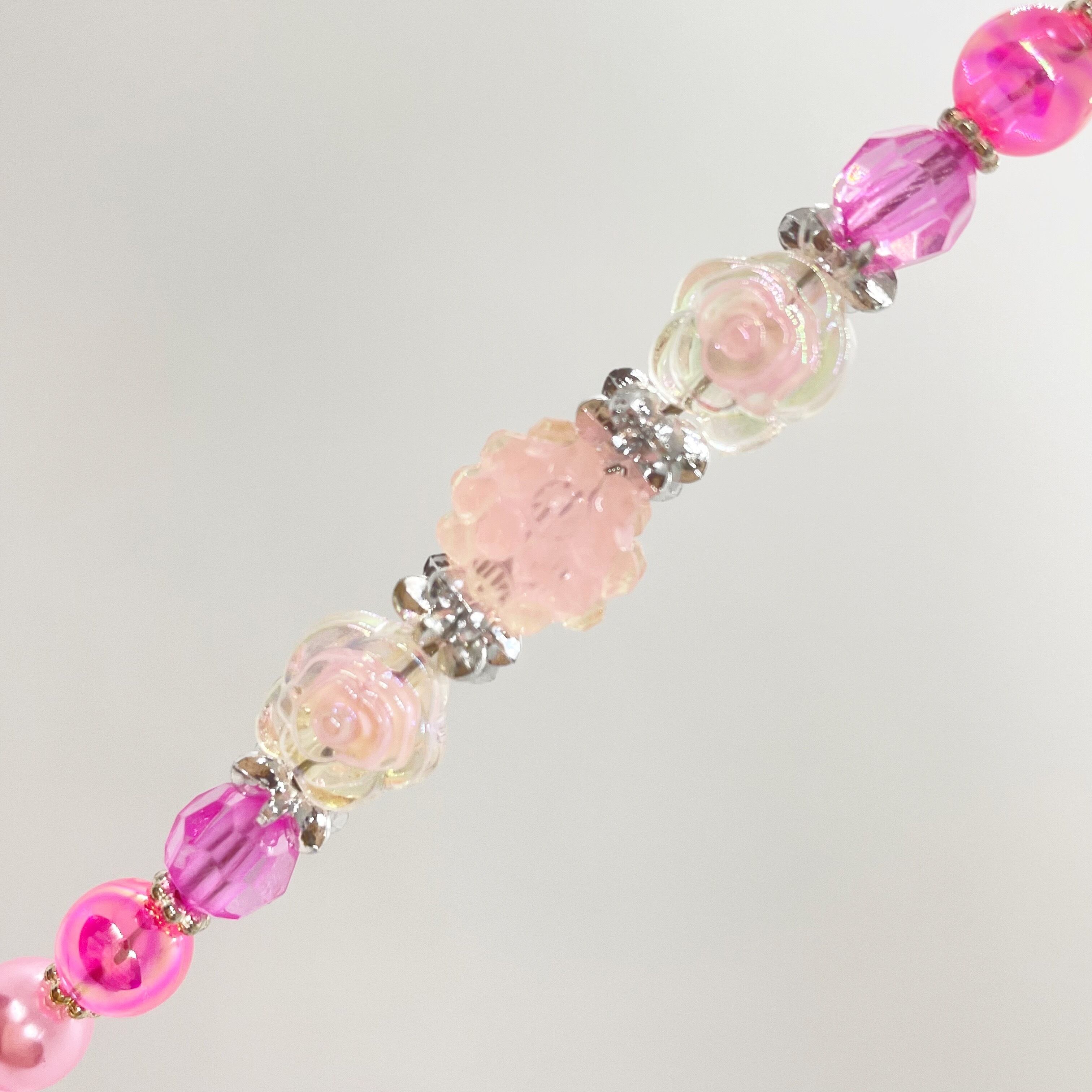 ピンクで統一された華やかなビーズに、大きめのお花がインパクトあって可愛らしいビーズリードです。〔全2カラーバリエーションあります〕