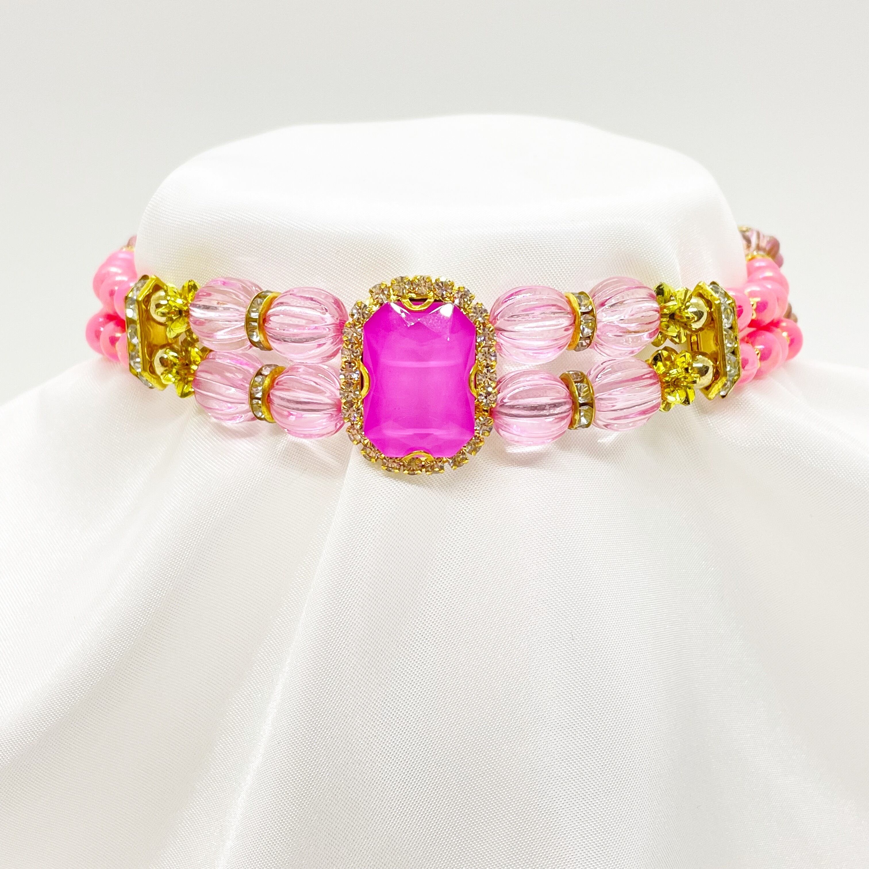 中央のスクエアビーズの周りを、ストーンで散りばめられキラキラでゴージャスなハーフチョークです。〔全8カラーバリエーションあります〕