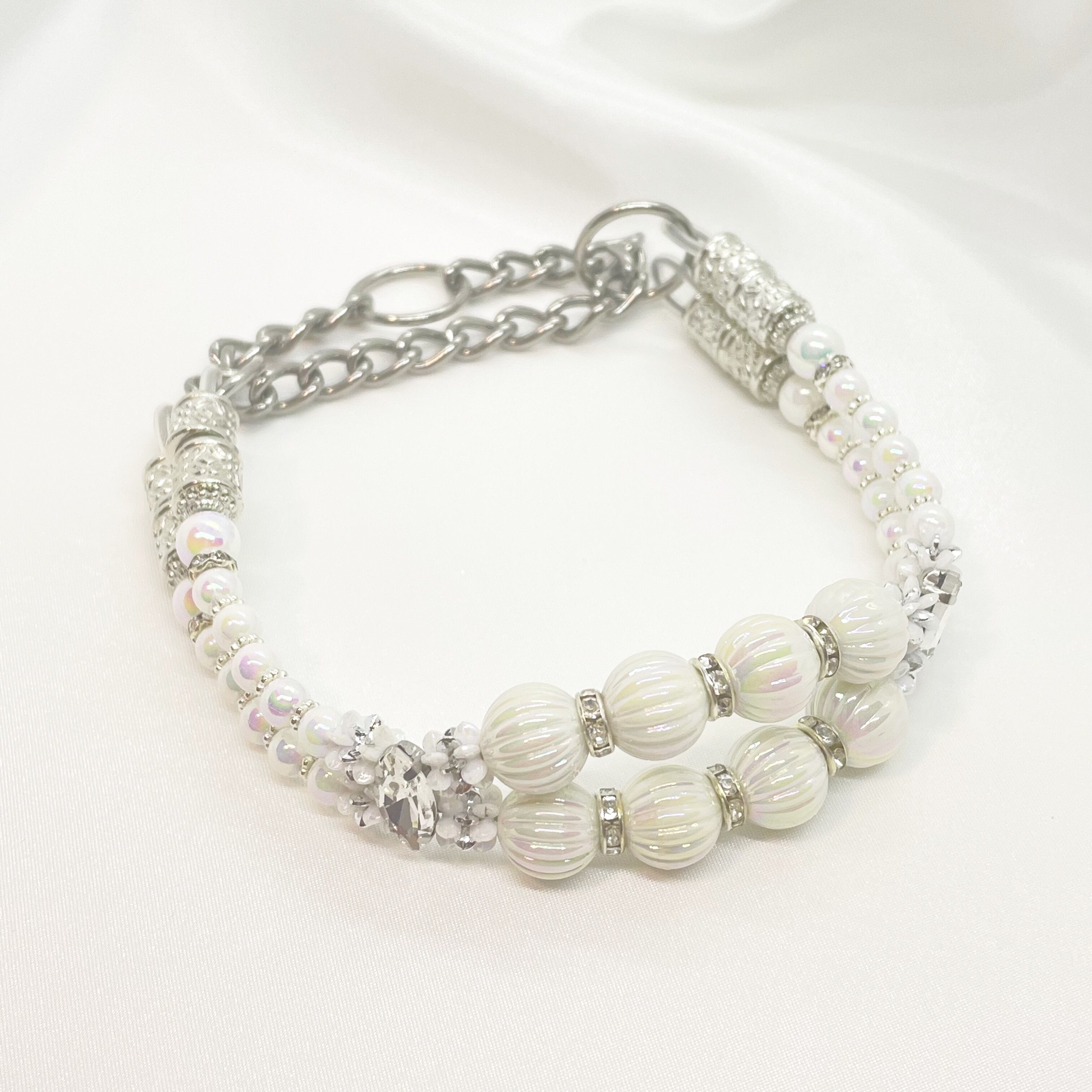 インパクトのあるトップのビーズに、左右のクリスタルが輝く綺麗で可愛らしいハーフチョークです。