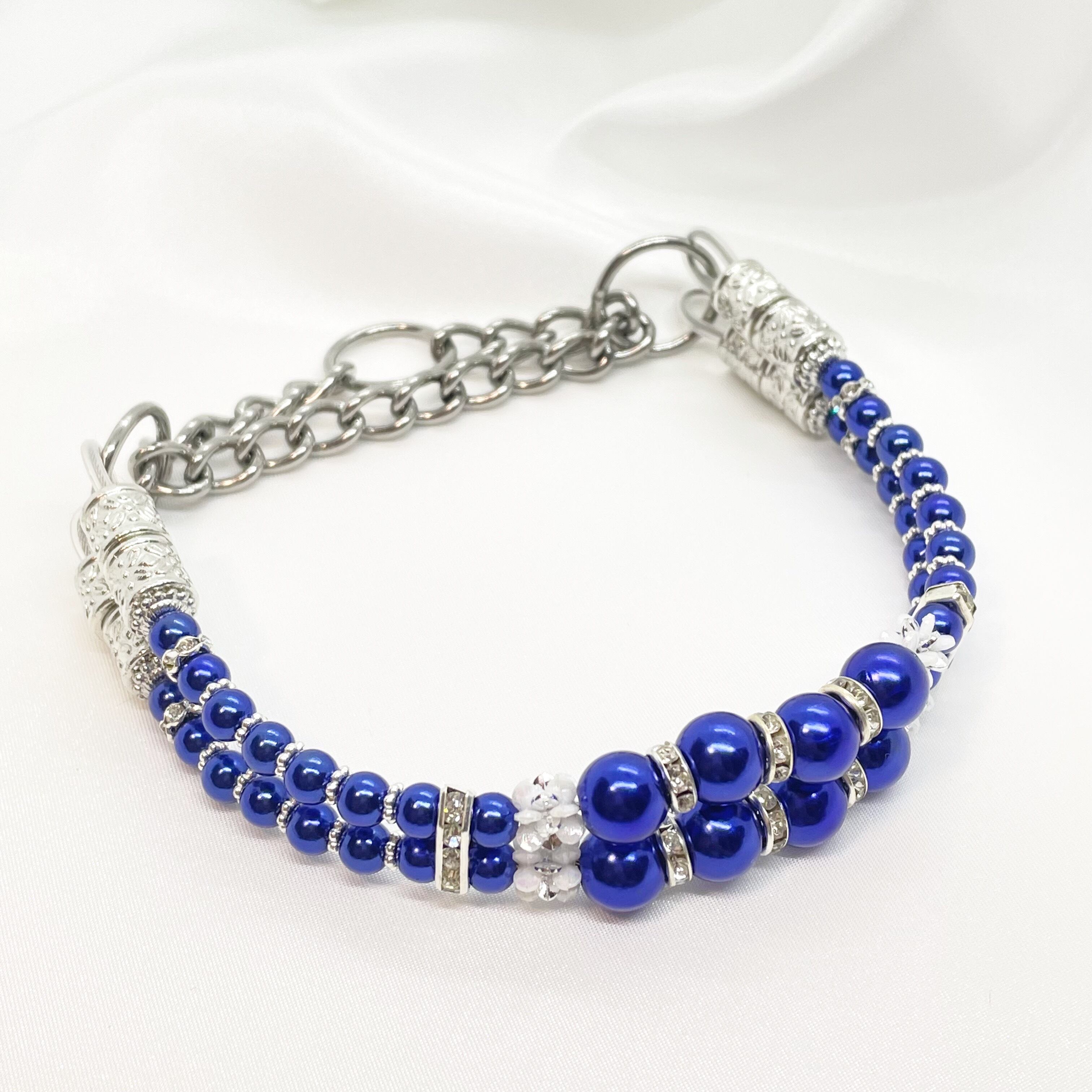 2連のビーズの間に、小さなストーンがキラキラ輝く上品なハーフチョークです。