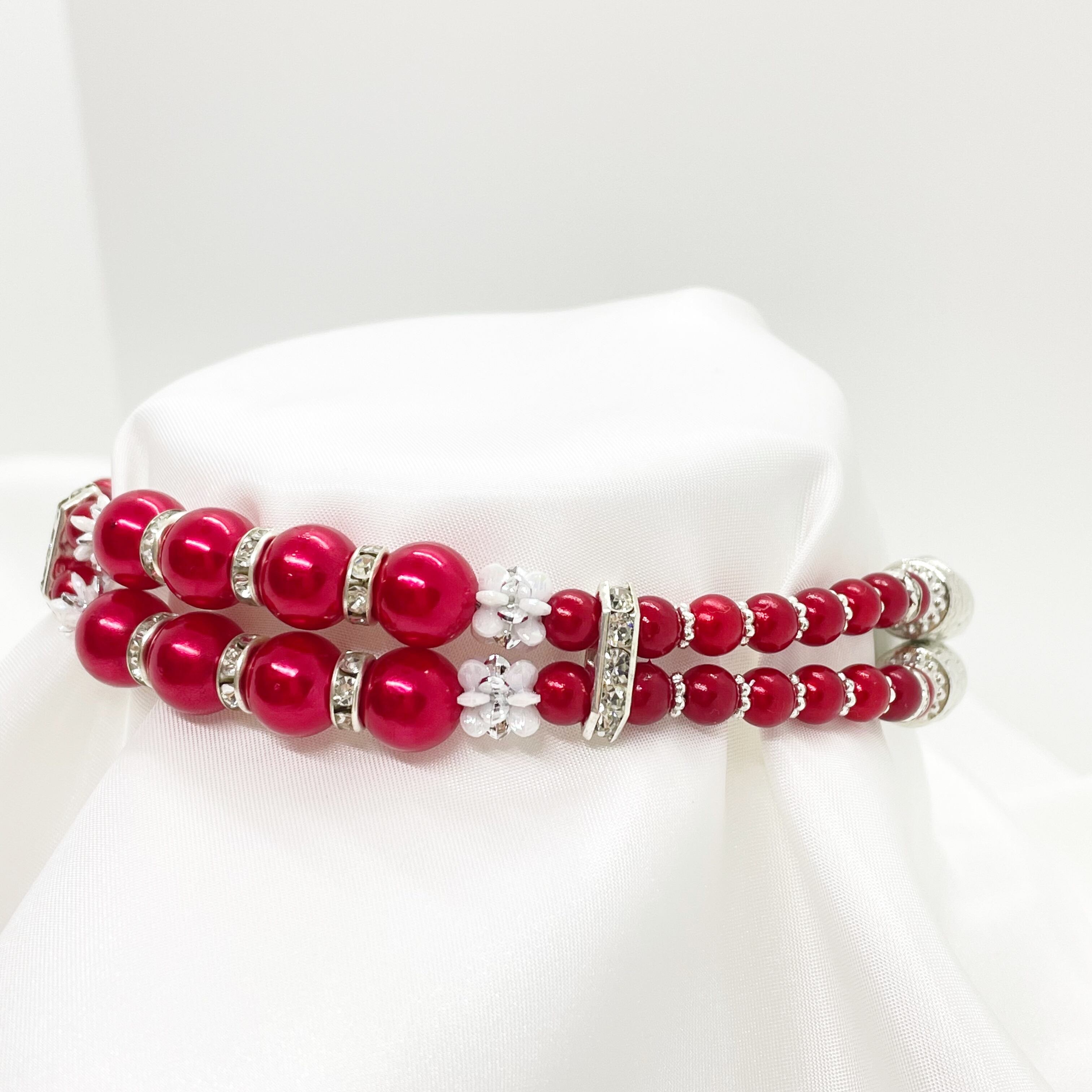 2連のビーズの間に、小さなストーンがキラキラ輝く上品なハーフチョークです。
