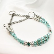 左右に輝くダイヤ形のスクエアビーズが綺麗で可愛らしいハーフチョークです。