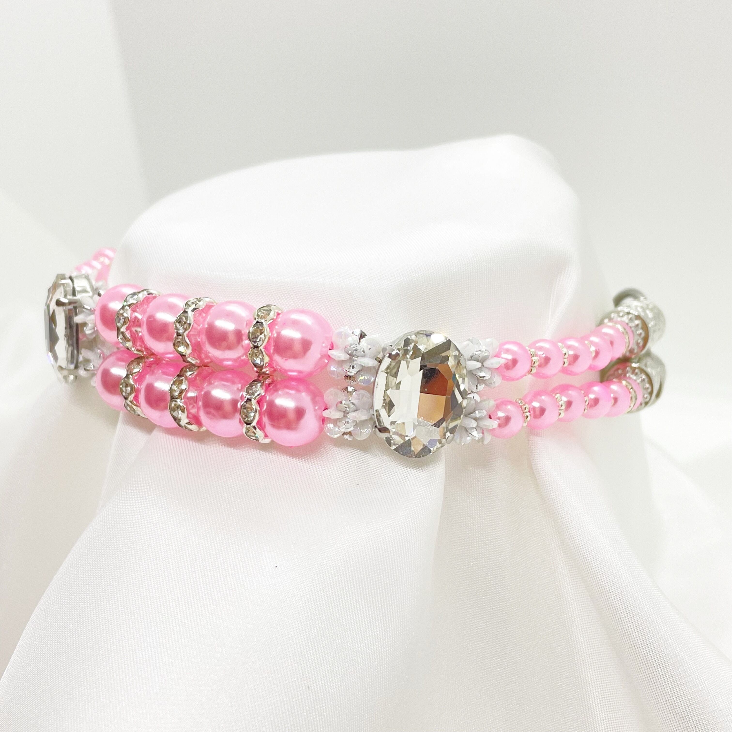 クリスタル風スクエアビーズがゴージャスで、可愛らしさを引き立ててくれるハーフチョークです。
