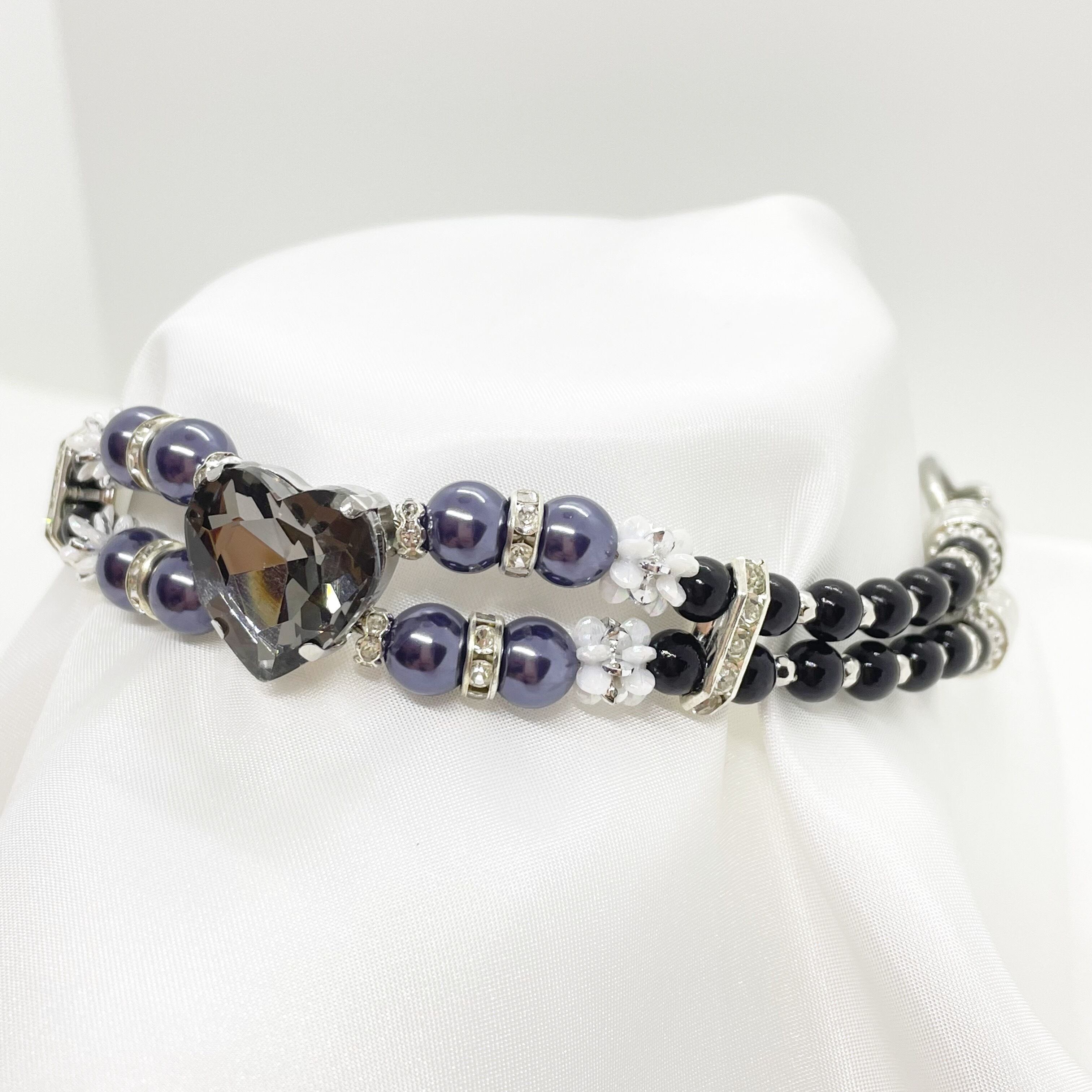 トップに大きなハートのスクエアビーズがキラキラ輝く、綺麗で可愛らしいハーフチョークです。