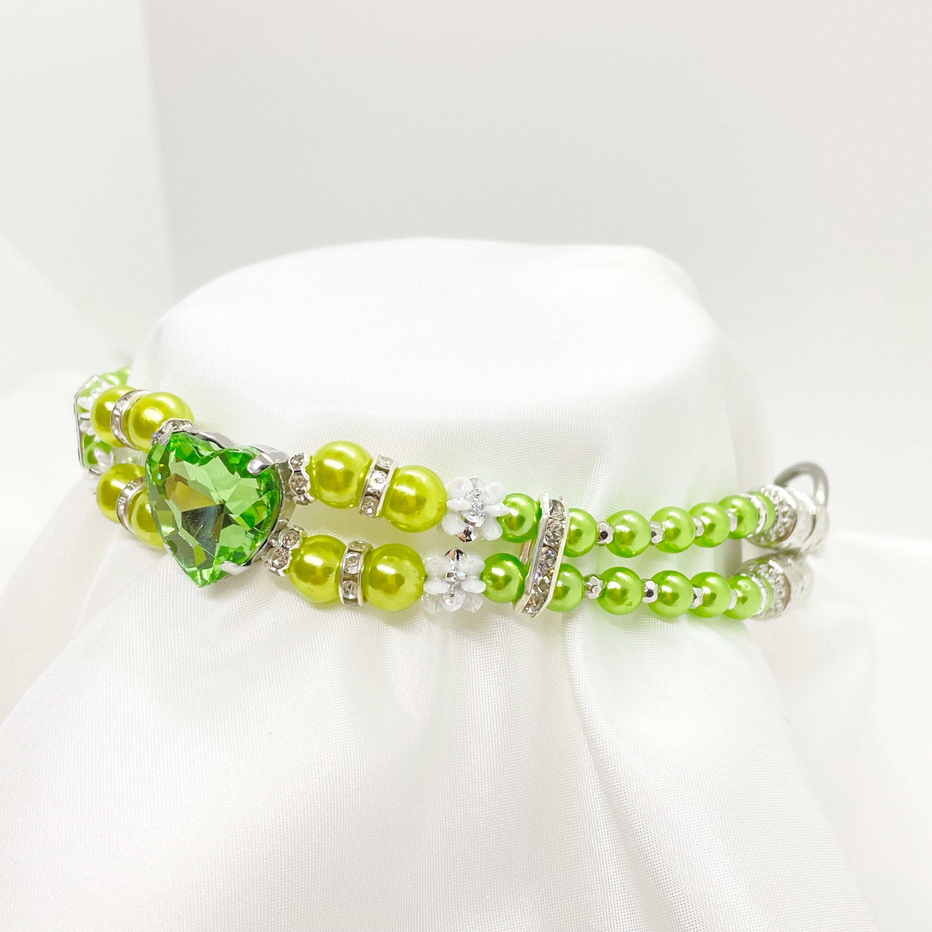 トップに大きなハートのスクエアビーズが、キラキラ輝く綺麗で可愛らしいハーフチョークです。