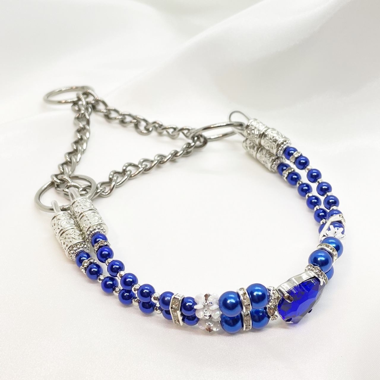 トップに大きなハートのスクエアビーズがキラキラ輝く、綺麗で可愛らしいハーフチョークです。