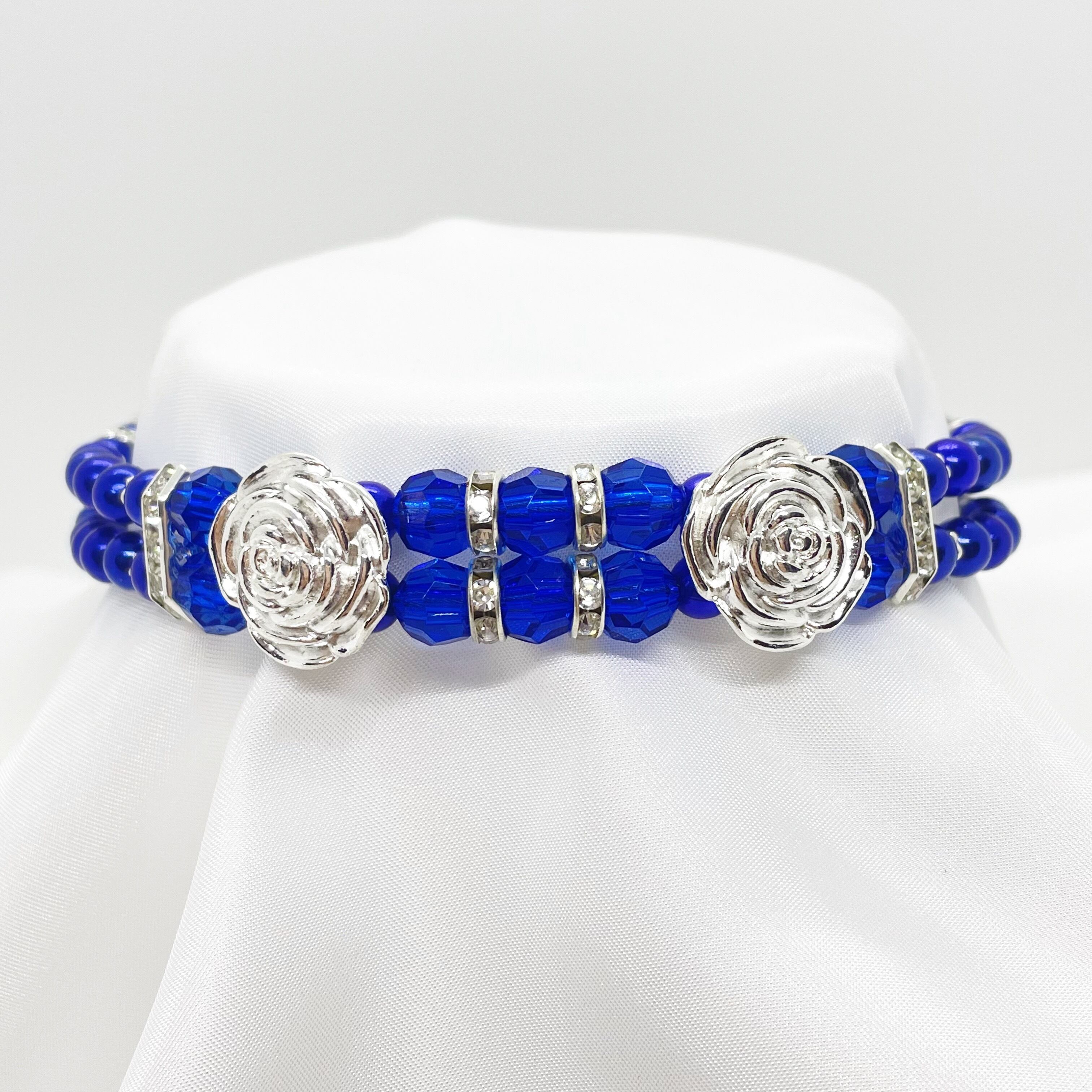 左右に大きめの薔薇のメタルスクエアビーズがエレガントで華やかなハーフチョークです。