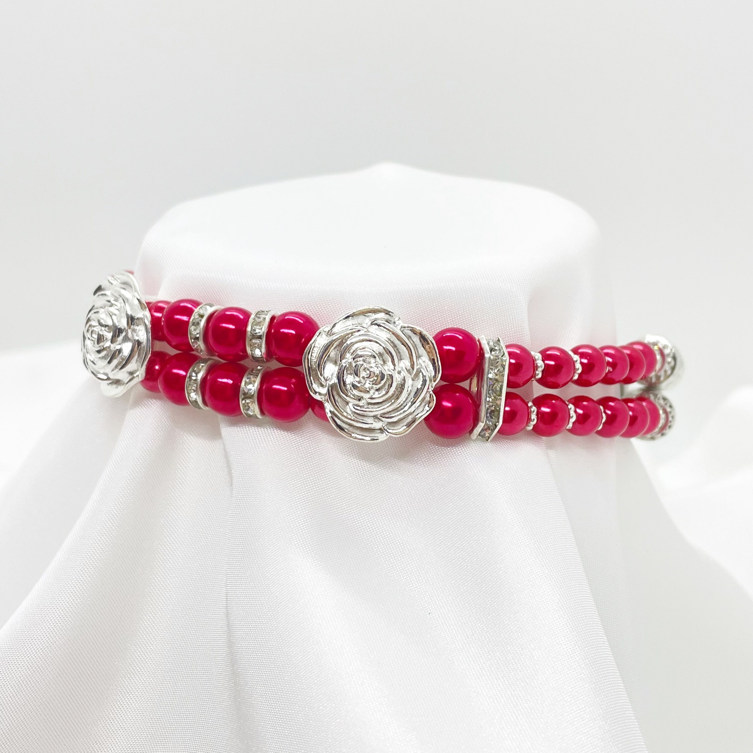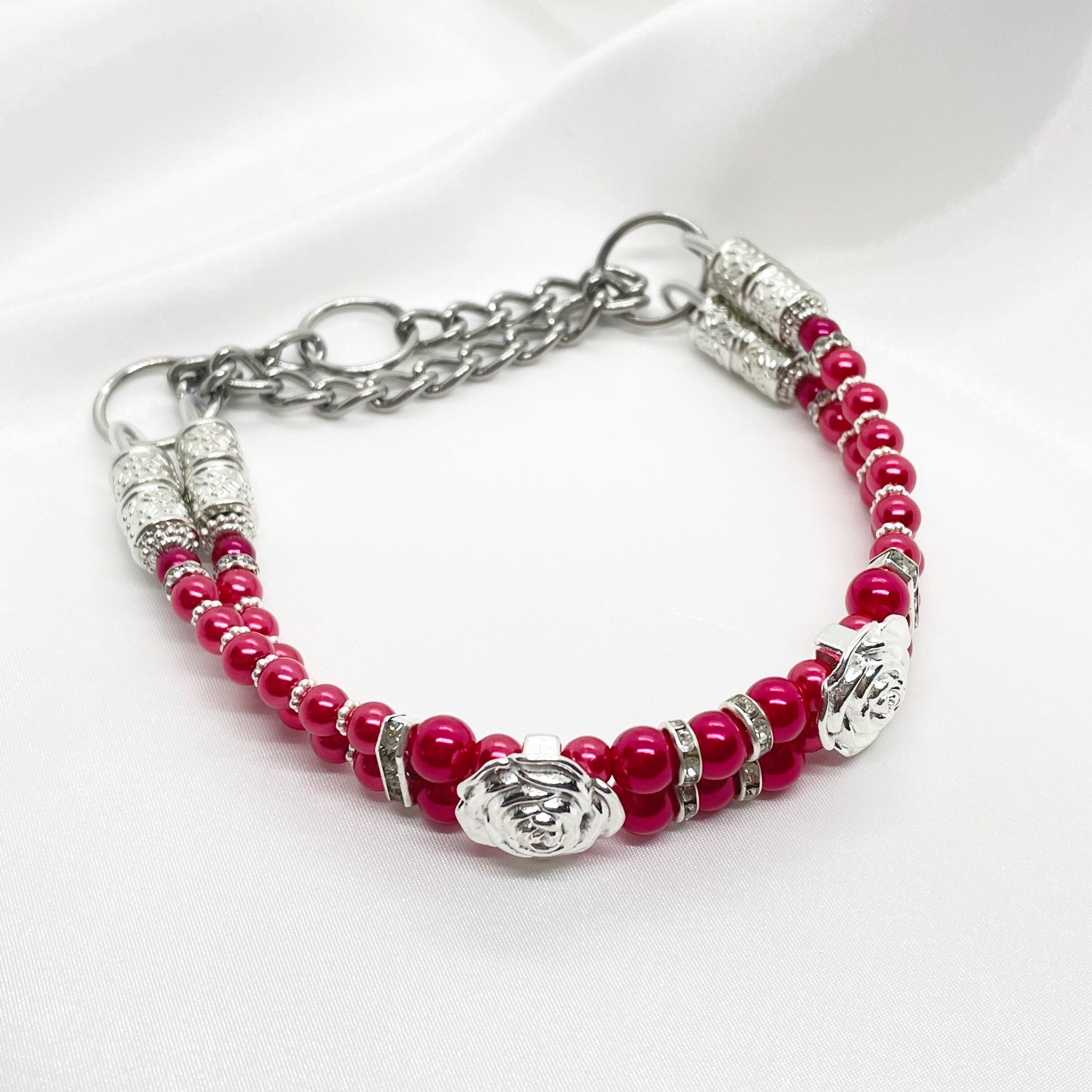 左右に大きめの薔薇のメタルスクエアビーズがエレガントで華やかなハーフチョークです。