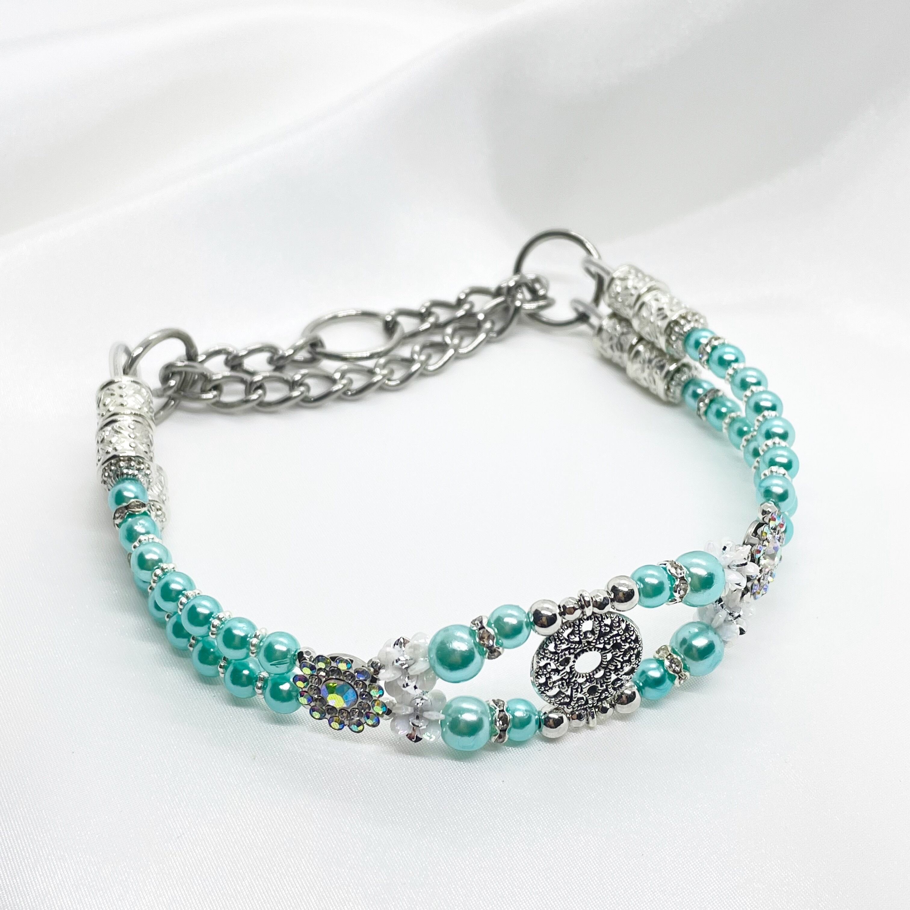 エレガントなアンティーク風ビーズに、虹色に輝く華やかなグラデーションビーズが綺麗でオシャレなハーフチョークです。