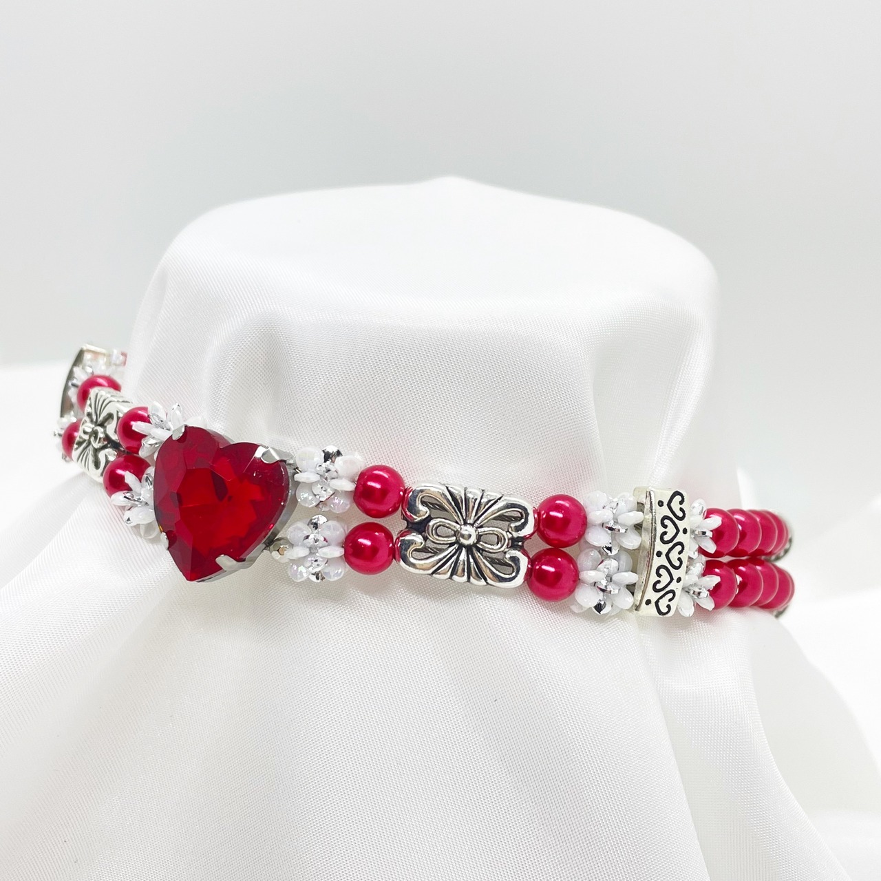 可愛らしいハートのスクエアビーズに、メタルビーズを組み合わせたオシャレでエレガントなハーフチョークです。