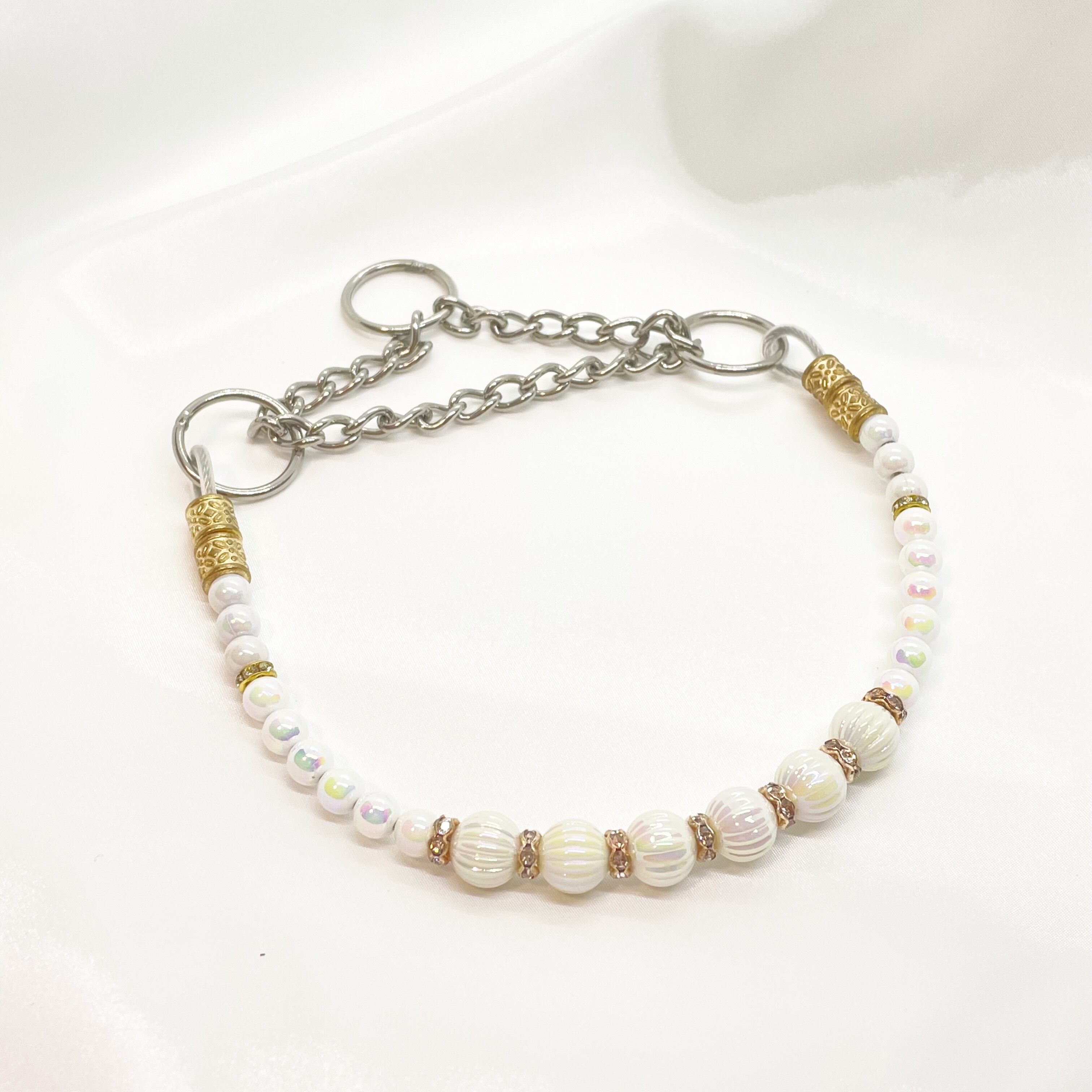 オーロラパールホワイトビーズが綺麗でエレガントなハーフチョークです。